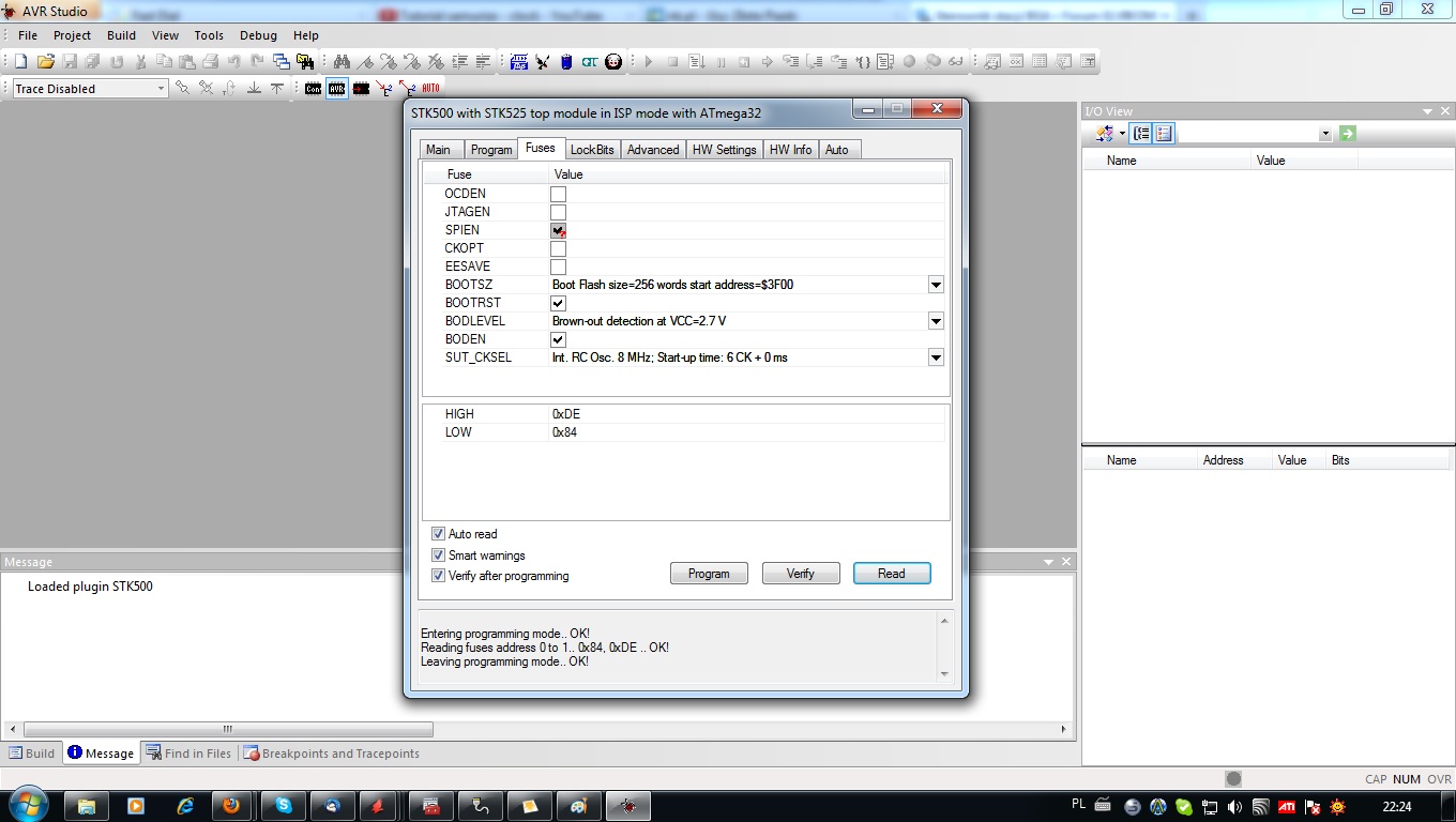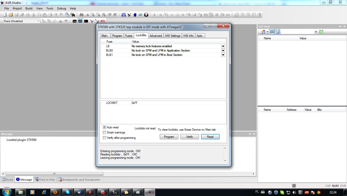 Sprzedawałem tylko jedną wersję płytek tą w której są rezystory przy termoparach. Dodam że mój sterownik działa poprawnie beż żadnych przeróbek płytki sterownik zlutowałem na takiej płytce jaką dostałem miałem jedynie problem z zaprogramowaniem przez bootloader wgrałem wszystko po ISP i wszystko hula tak jak trzeba mogę wgrywać profile po USB bez problemu. Testy robiłem na win7 64bit, może trochę głupie pytanie zadaje ale czy system wykrywa poprawnie ft232 może sterownik jest jakiś lipny i przez to kolega "bserwis" nie może nic odczytać z portu. Zamieszczam też screen z ustawieniami fusesbits oraz lockbits.