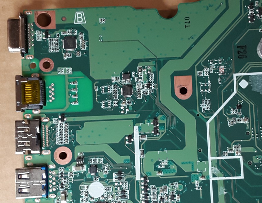 - Measure the voltages to ground on pins 12, 14, 18, 30, 33, 50, 72, 74, 78, 100, 112, 118, 119, 120, 127 of KBC chip.