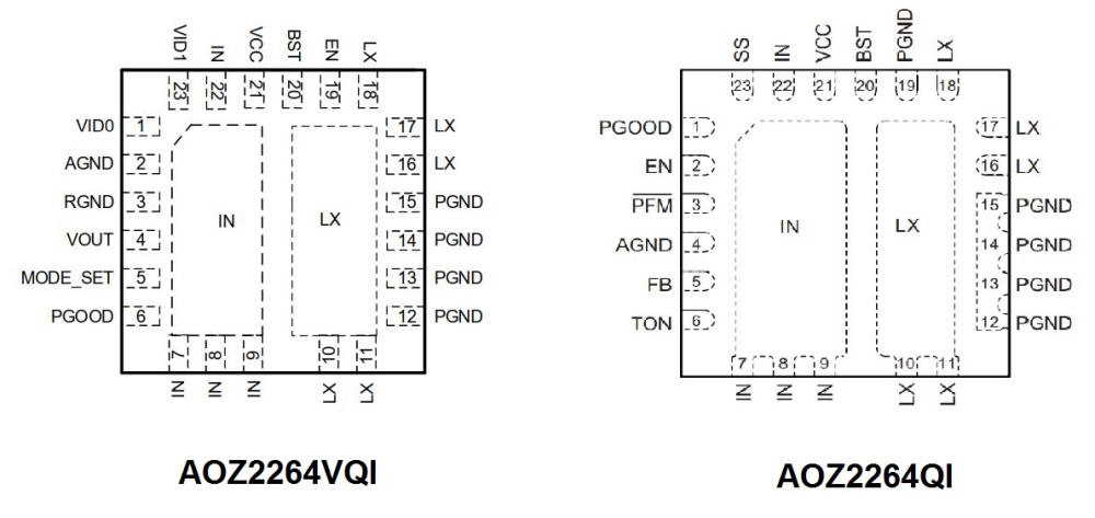 This chip AOZ2264QI-20 has a different pinout and is definitely not a suitable replacement.