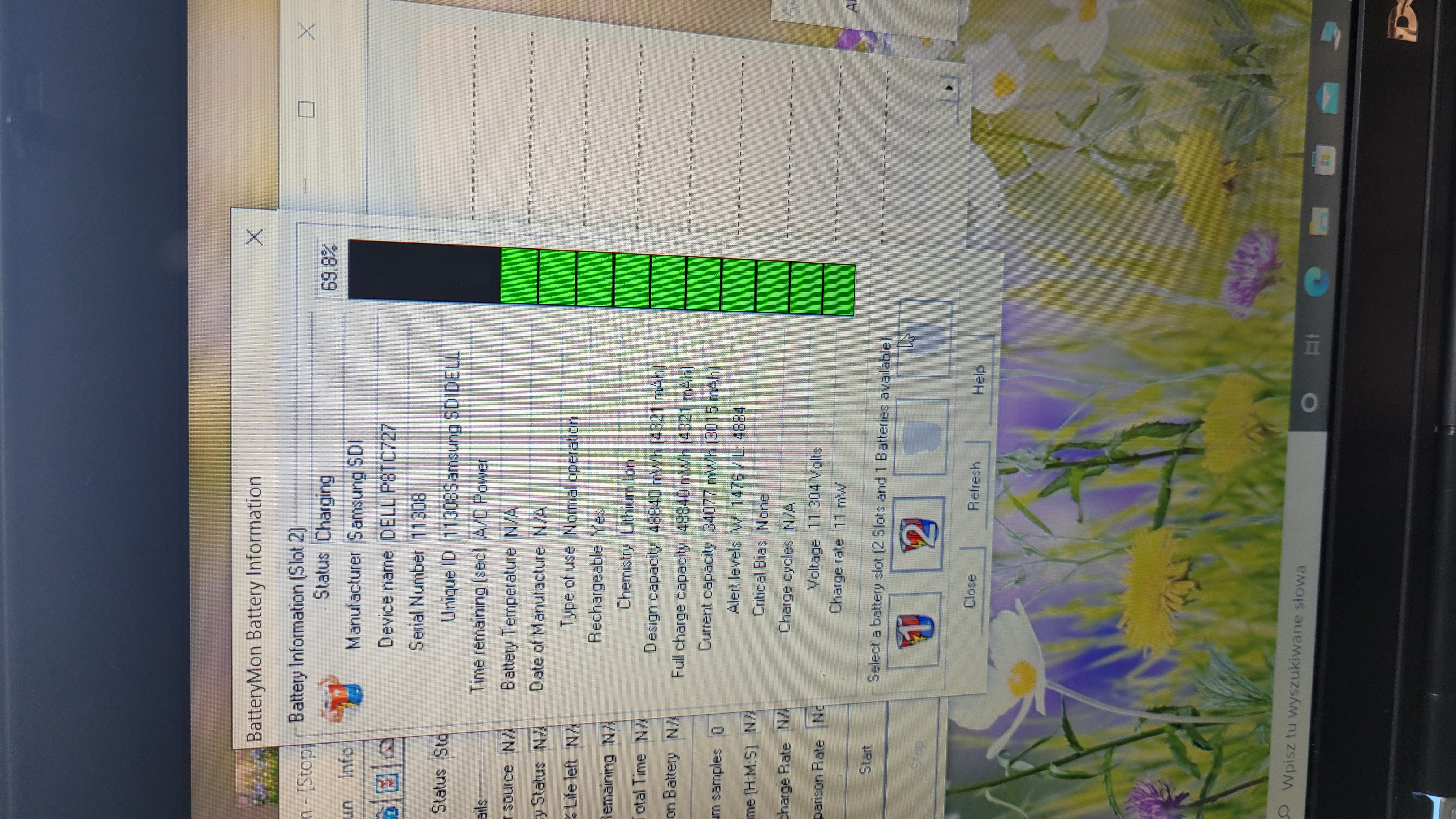 Czy gdy był uruchomiony program batterymon był podłączony zasilacz?