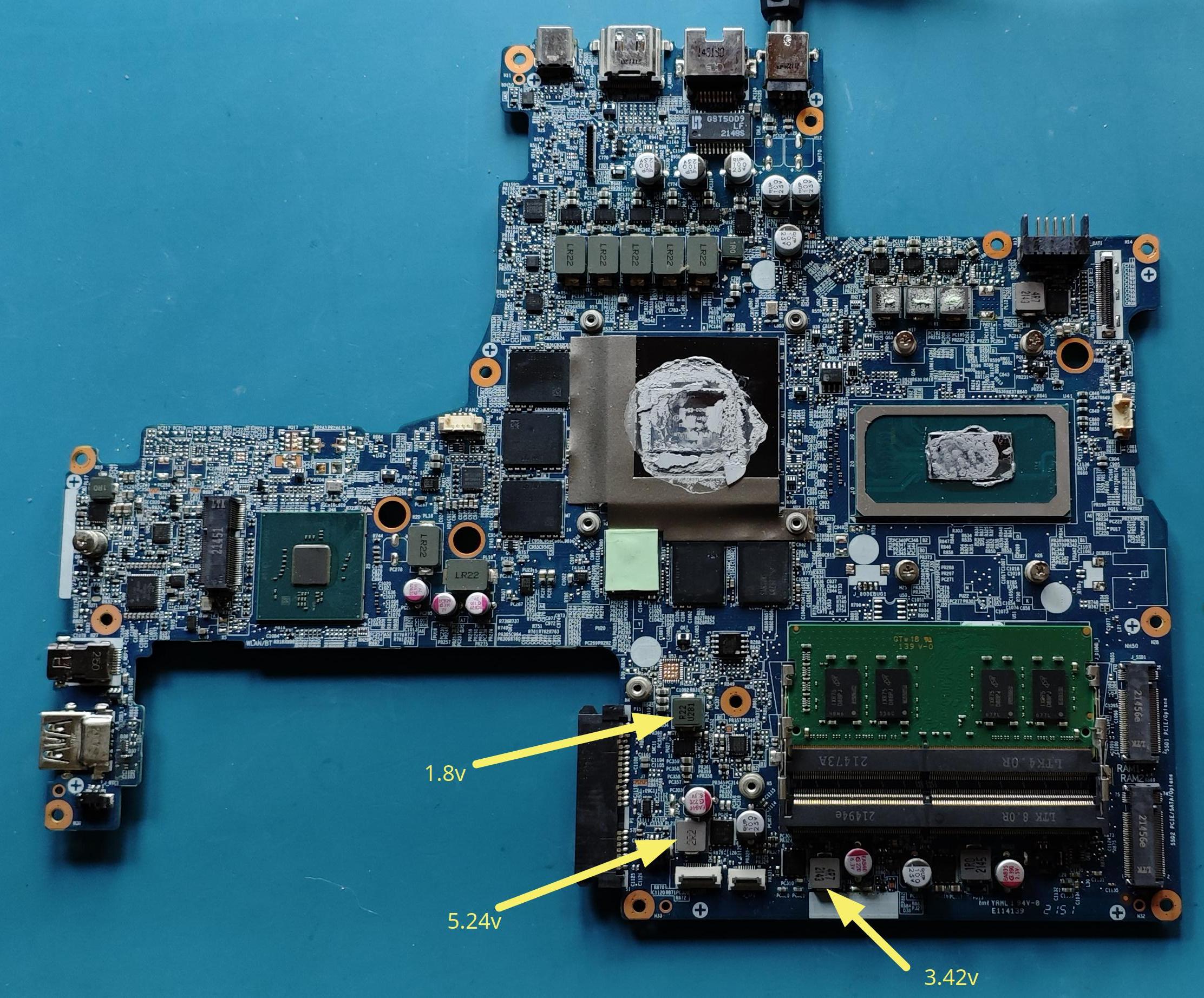 Have checked some voltages around the EC chip (ITE IT5570E-128), they are as follows: