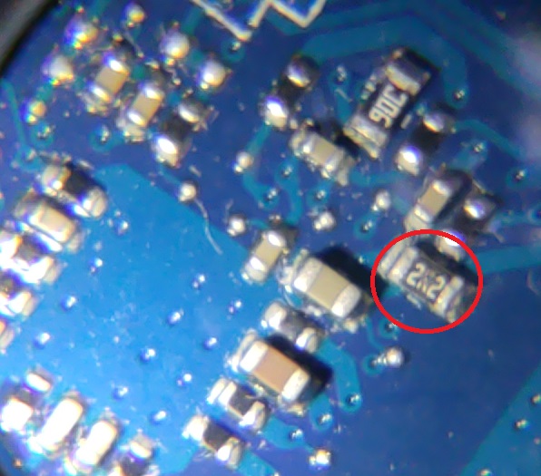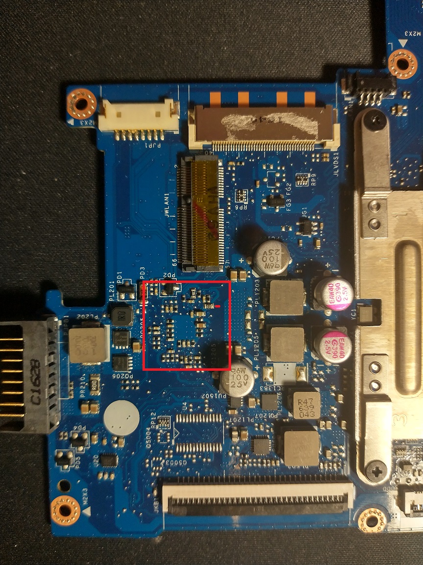 Laptop nie reaguje na włącznik. Po podpięciu zasilacza świeci się dioda. Przepatrzyłem płytę główną pod lupą i znalazłem uszkodzony rezystor - chyba w układzie z NCP81206. Ciężko, bo nie ma schematu, załączam zdjęcia. Układ jest po drugiej stronie płyty. Proszę o pomoc w zdiagnozowaniu usterki.