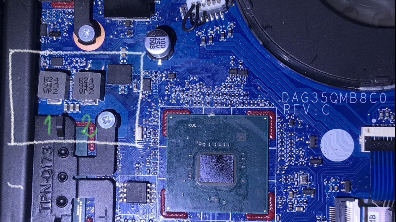 The laptop starts up and the fans work, the radiator heats up but as I said there is no video on the screen and neither via HDMI.
