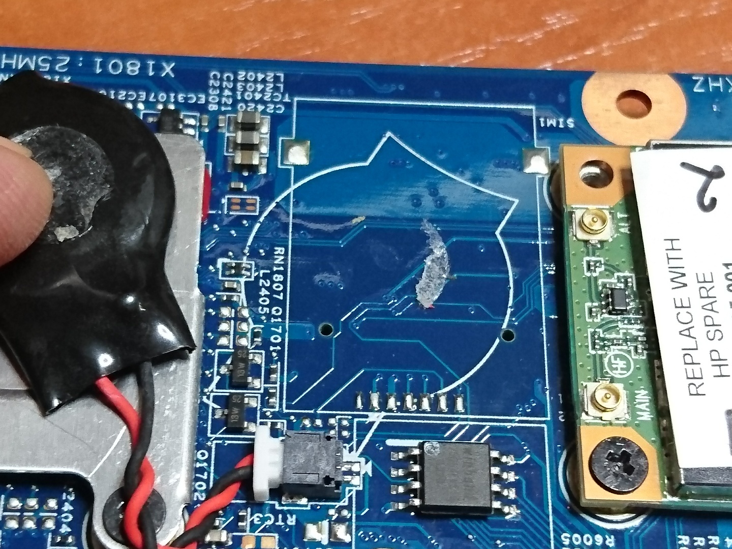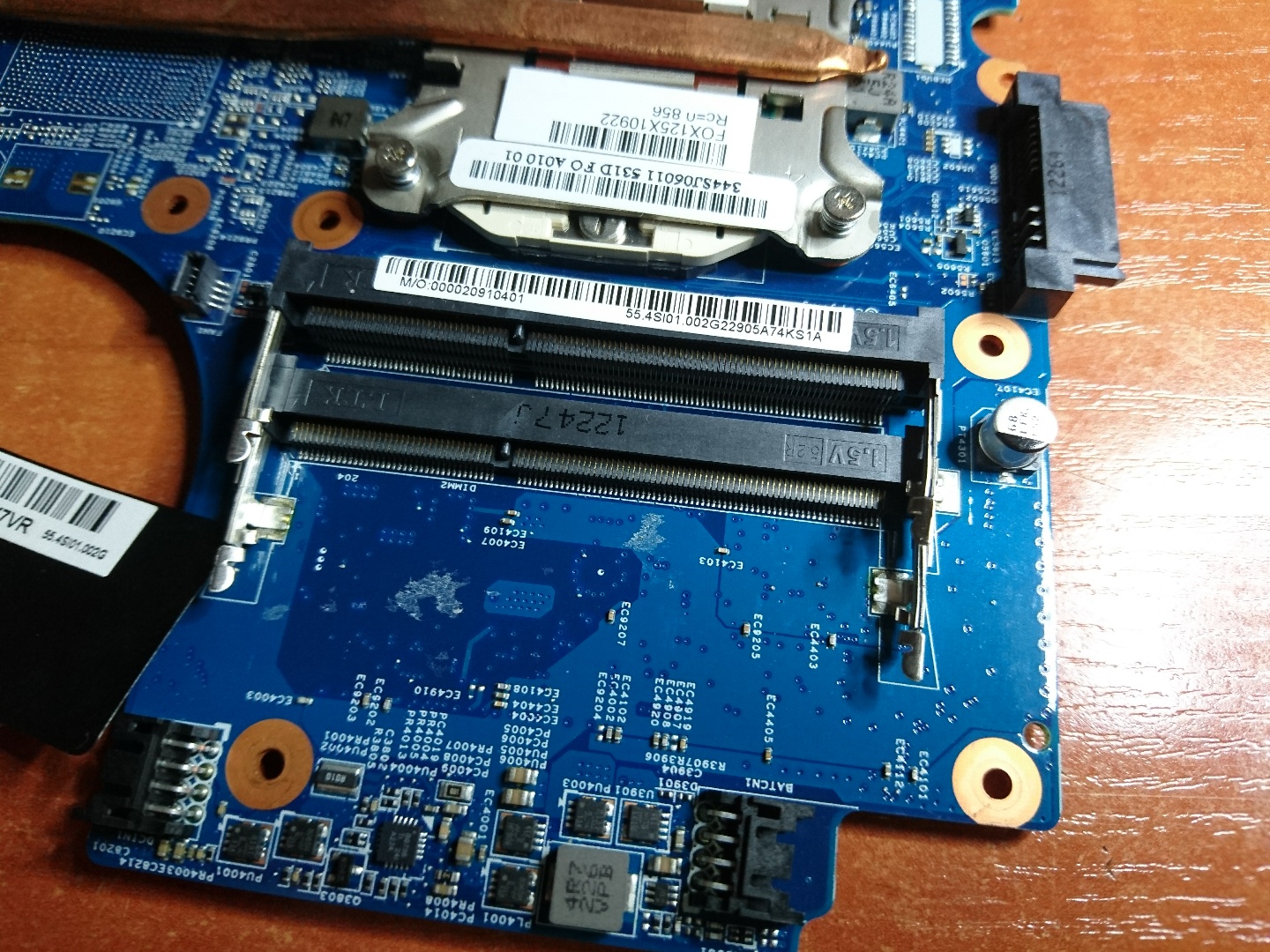 Zamieszczam dwa dodatkowe zdjęcia zgodnie z poleceniem moderatora, z pod karty wifi oraz z pod naklejki pod slotem RAM (zaglądałem tam wcześniej, nie widziałem żadnych oznaczeń, dlatego nie zamieściłem tych dwóch zdjęć).