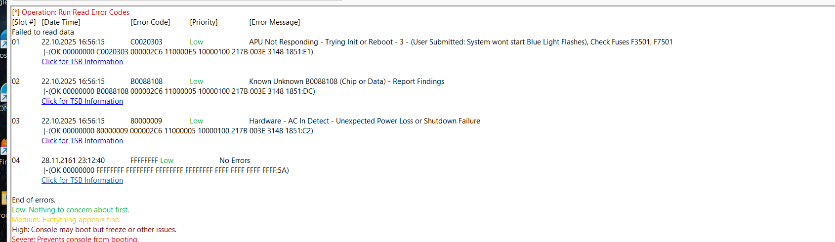 Tak jak w tytule, konsola zawiesza się podczas próby zagrania w jakąkolwiek grę, czasem szybciej czasem kawałek dalej, ale generalnie miejsca w którym się zawiesza są powtarzalne. Gdy gra się zawiesza to po chwili wyskakuje raport błędu z takim kodem: ce-108255-1. Sprawdziłem błędy w uart (zdjęcie poniżej). Były wykonywane wszystkie możliwe resety, odbudowy baz danych, reinstalacja systemu, poza tym wymieniłem kontroler dysku, wymieniłem zasilacz, zrobiłem reflow apu, wymieniłem układ Dialog Da9065, wrzucałem inny wsad bios nic nie pomogło. Dodam, że Yt działa elegancko, nic się nie zawiesza. Myślę nad wykonaniem reflow wszystkim pamięciom dysku oraz wszystkim kościom ram. Miał ktoś podobny problem?