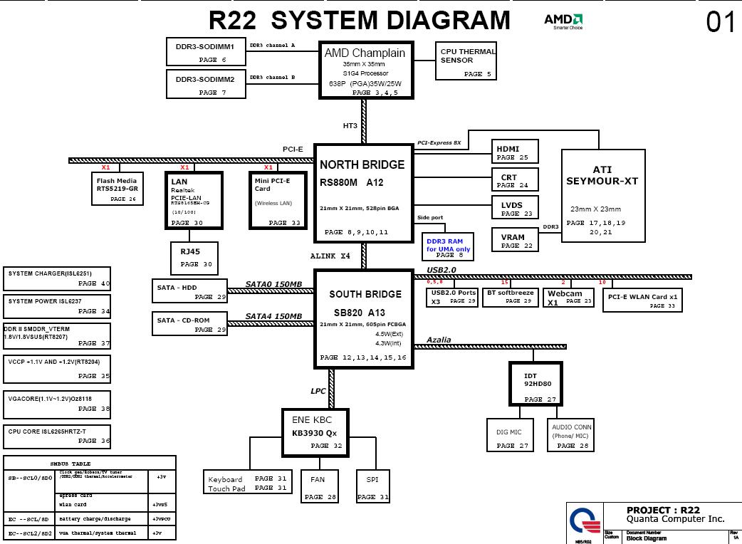 #1 Schemat HP Pavilion G4, G6 Quanta R22 DA0R22MB6D0