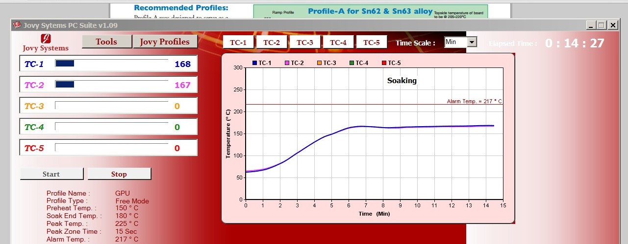 Próbuje stworzyć profil grzania, podczas prób maszyna nie wychodzi ze stanu soaking tylko utrzymuje grzanie na około 160 stopniach. Zauważyłem że to się tylko dzieje jak mam zapisany profil w free mode czyli moc grzałek ustawiona jest manualnie.