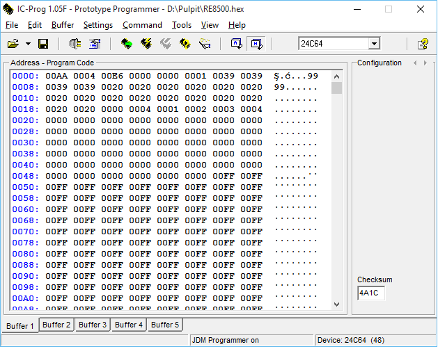 Rozkręciłem stację wylutowałem pamięć EEPROM (24C64). Za pomocą ICprog zgrałem wsad. Programik zamienia wartości hex na wartości asci dzięki czemu mogłem odczytać hasło. Hasło znajdowało się zaraz na początku pamięci i stanowiło 9999.