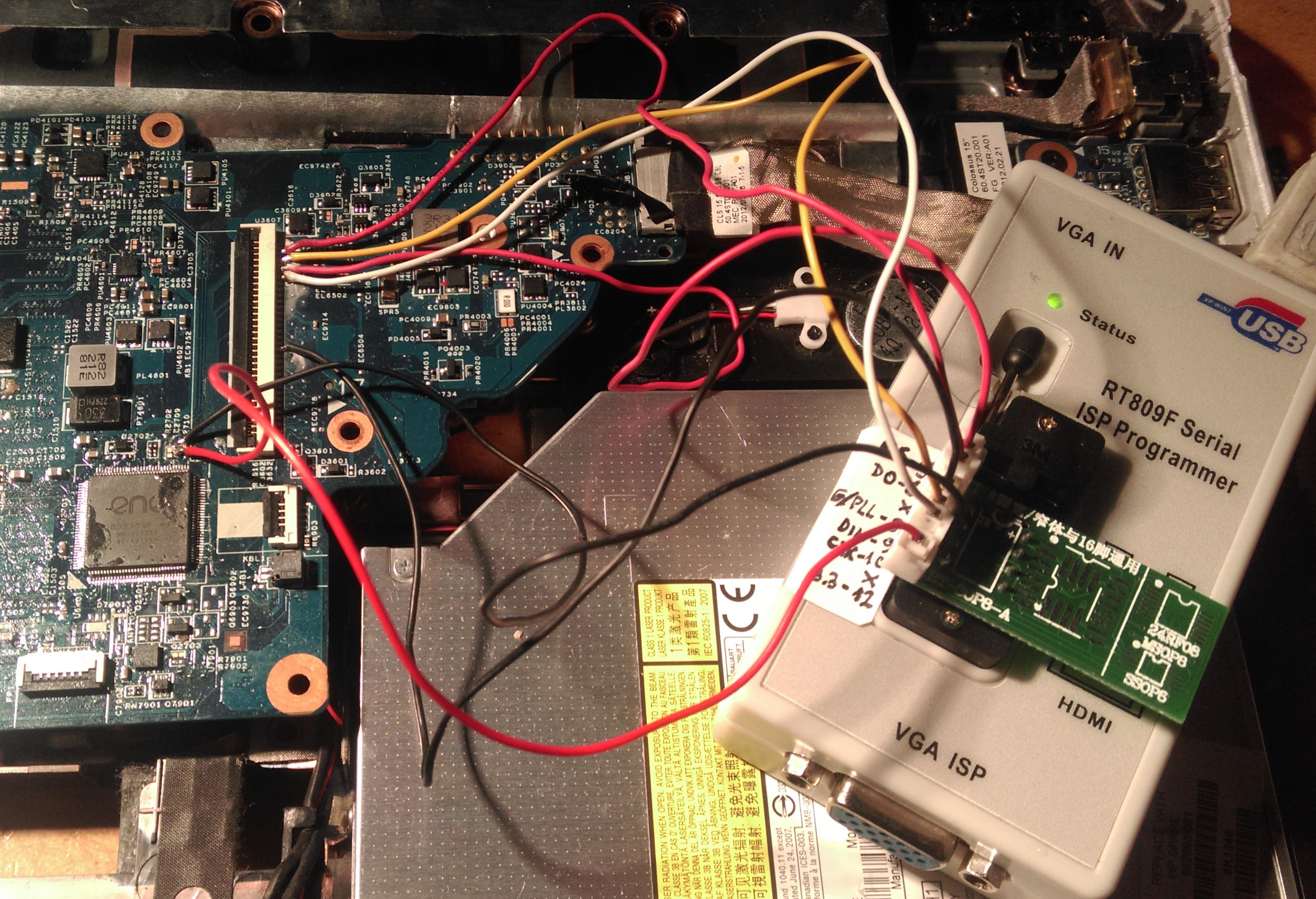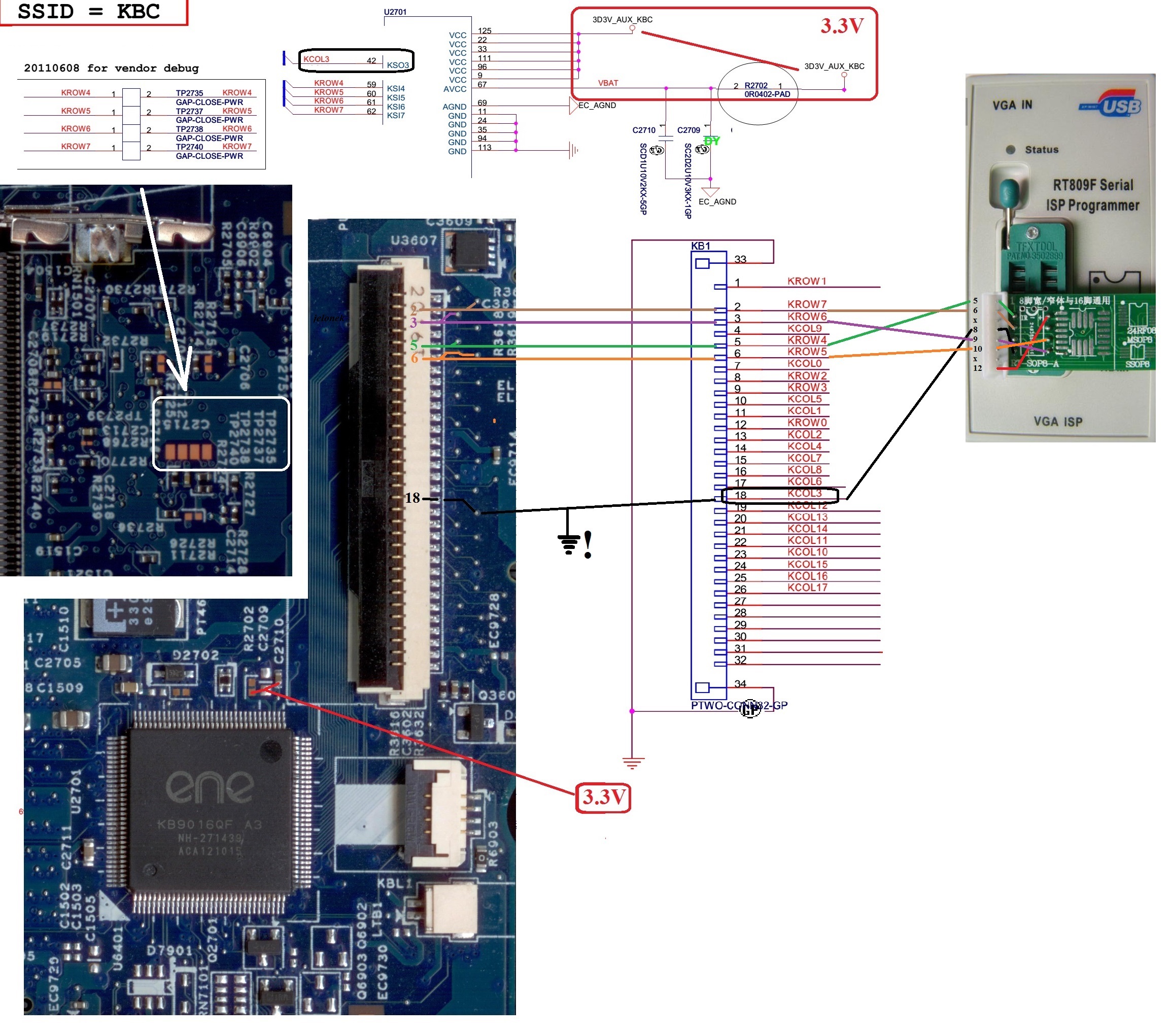 Wizualnie programowanie przybiega chyba prawidłowo. Załączam log oraz zdjęcie połączeń. Próbowałem flashować oryginalne KBC (przed programowaniem OK, po - martwy) jak i nowe. W obu przypadkach bez efektu. Płyta jest że tak powiem "bricked"