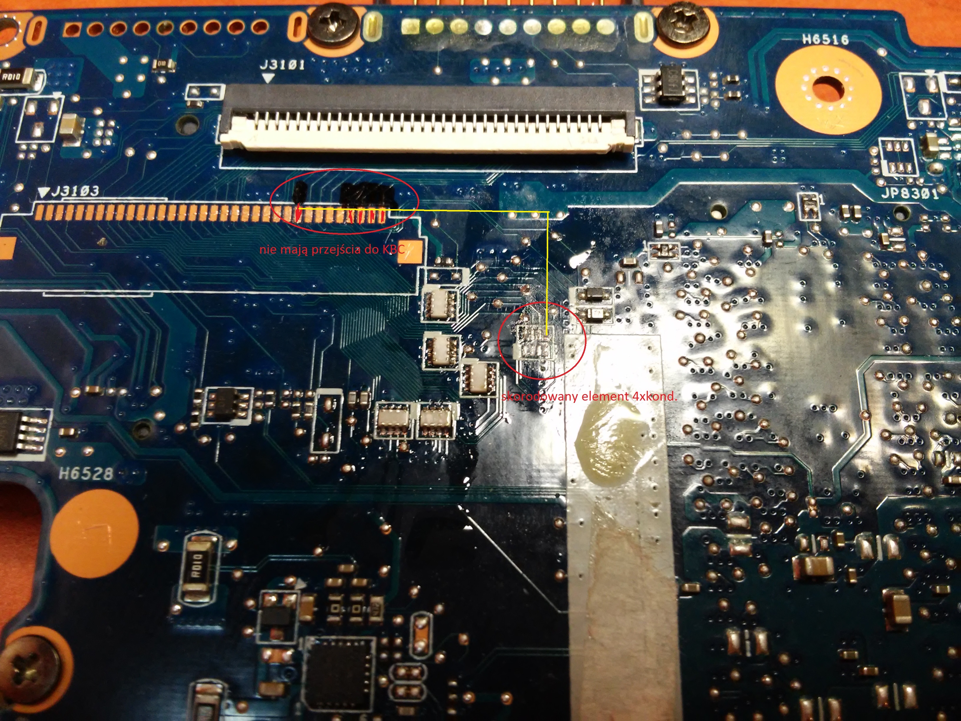 W zał. zdjęcie po prawej podlany element którym 4 pin kond. łączył się z 1 czerwonym pinem (żółta linia).
