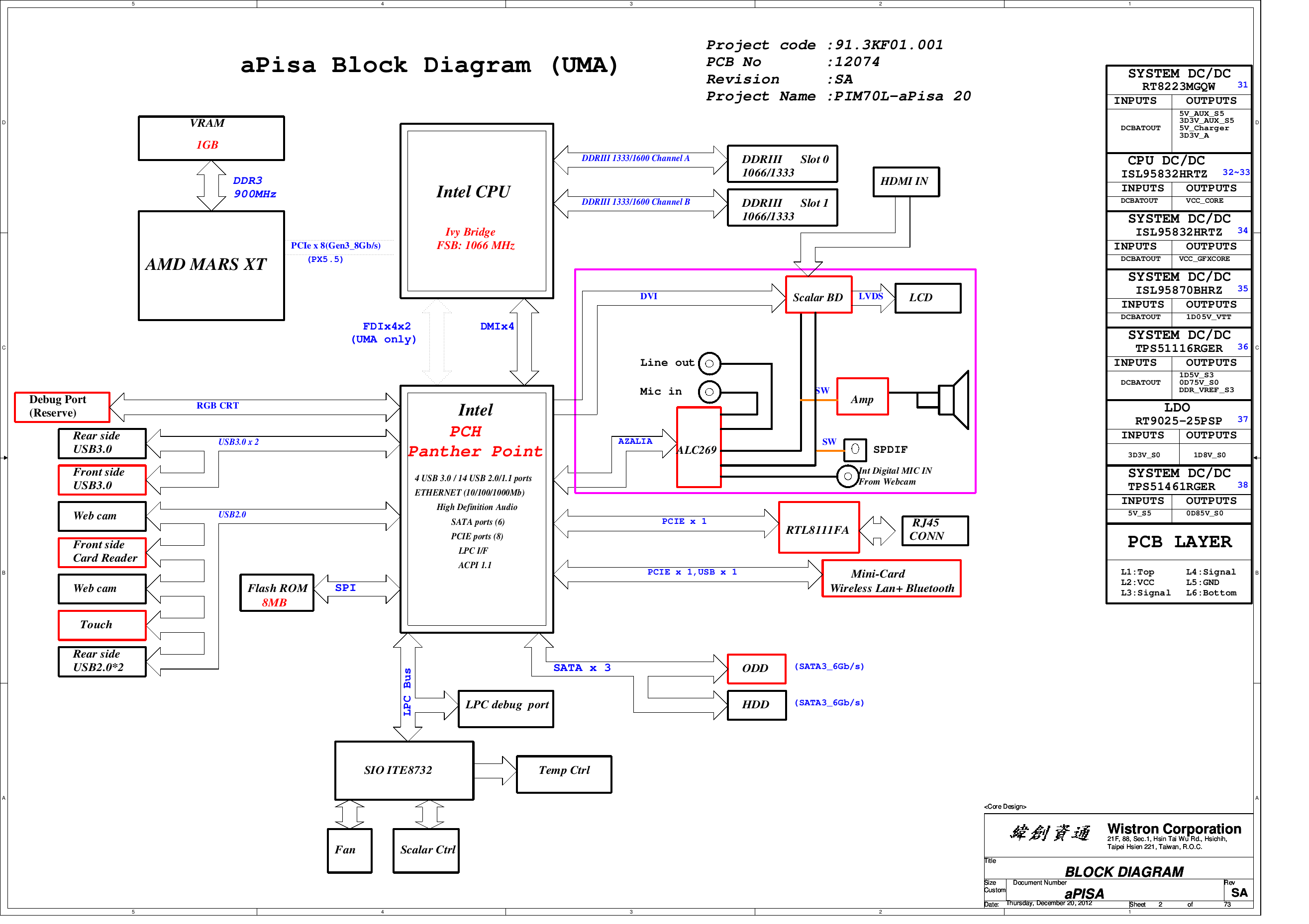 #1 Schemat Acer Aspire Z3-605 Wistron aPisa 12072 / 12074 PIM70L