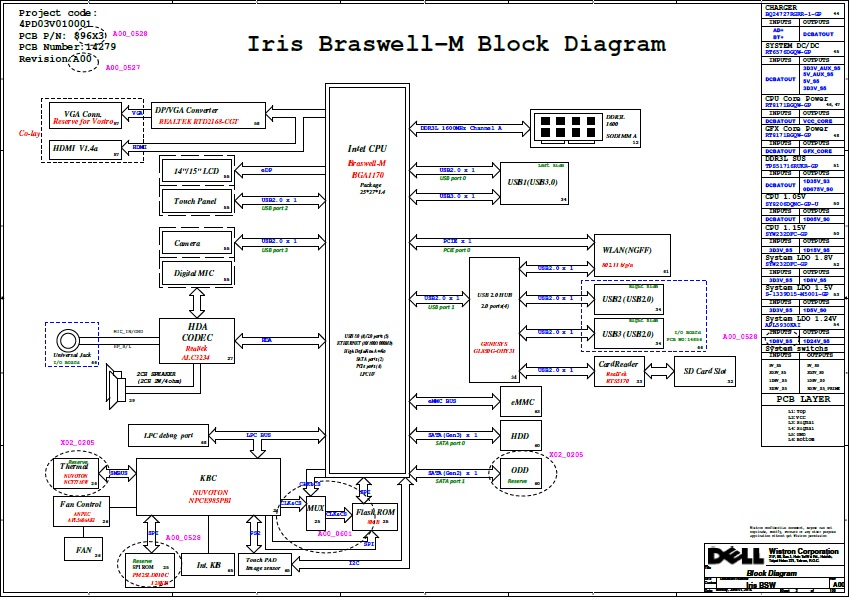 SchematModel: Dell Inspiron 15-3552Platforma: Wistron Iris BSW 14"/15" 14279Rev: A00 2015-06-05