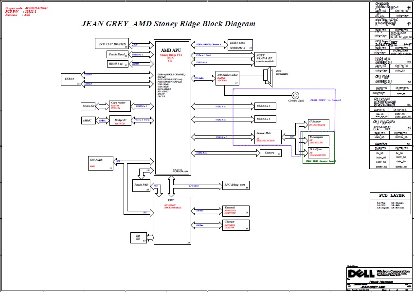 Schemat + Boardview (*.brd) Allegro Free Viewer 16,6Model: Dell Inspiron 3195 2-in-1Platforma: JEAN GREY 11.6" JEAN GREY_AMDPCB: 18811-1Rev: A00 2019-03-29