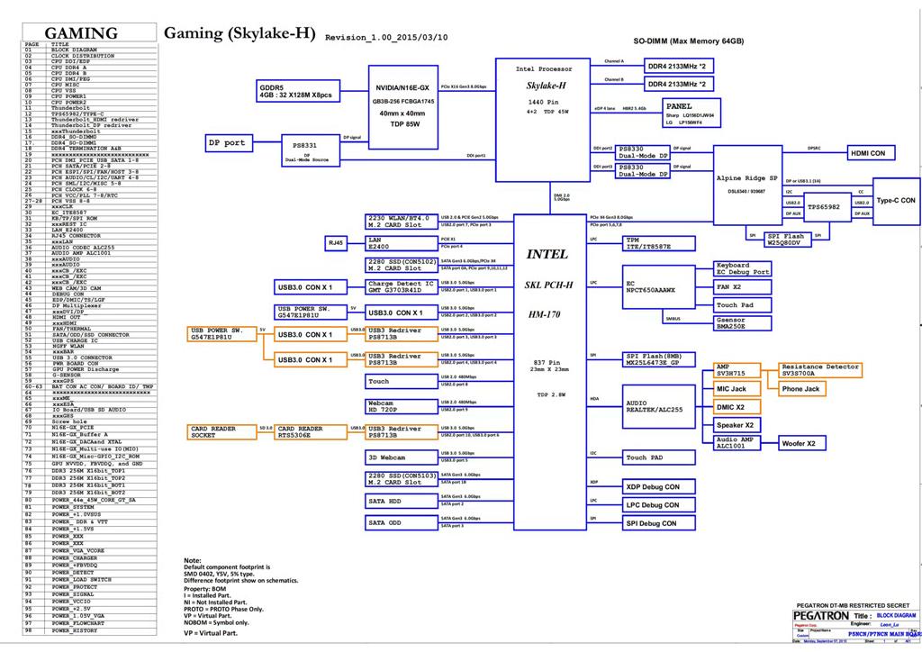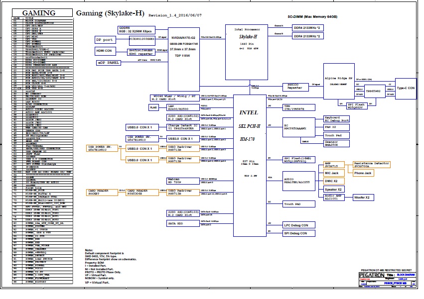 SchematModel: Acer Predator 15 G9-591GPlatforma: Pegatron P5NCN P7NCN (SkyLake-H)Rev: 1.4 06.07.2016