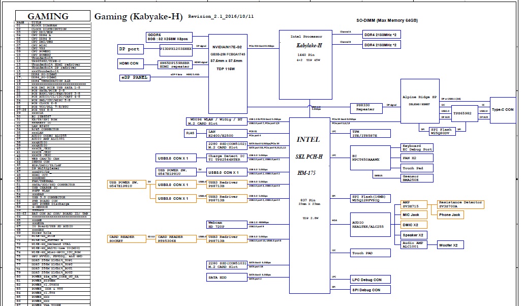 SchematModel: Acer Predator 15 G9-591GPlatforma: Pegatron P5NCN P7NCN (KabyLake-H)Rev: 2.1 10.11.2016
