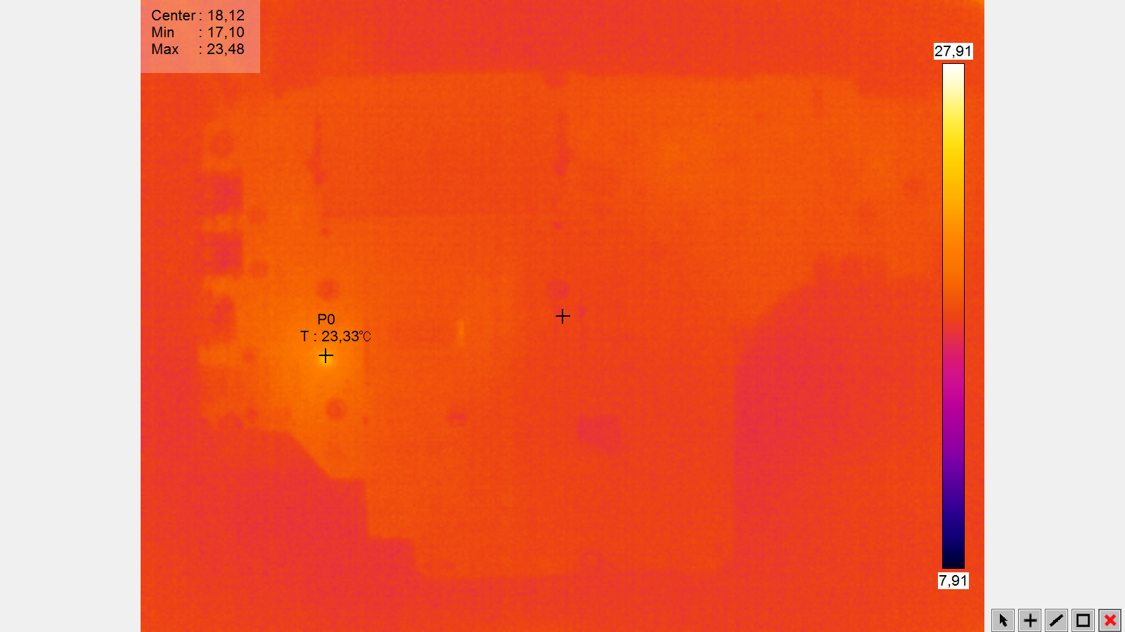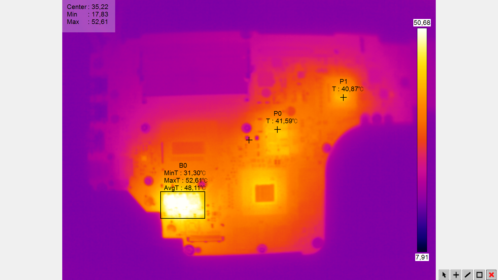 Po podaniu napięcia 1V na n.2 R15 linia pobiera 450-550mA i grzeje się procesor (załączam obraz z kamery termowizyjnej).