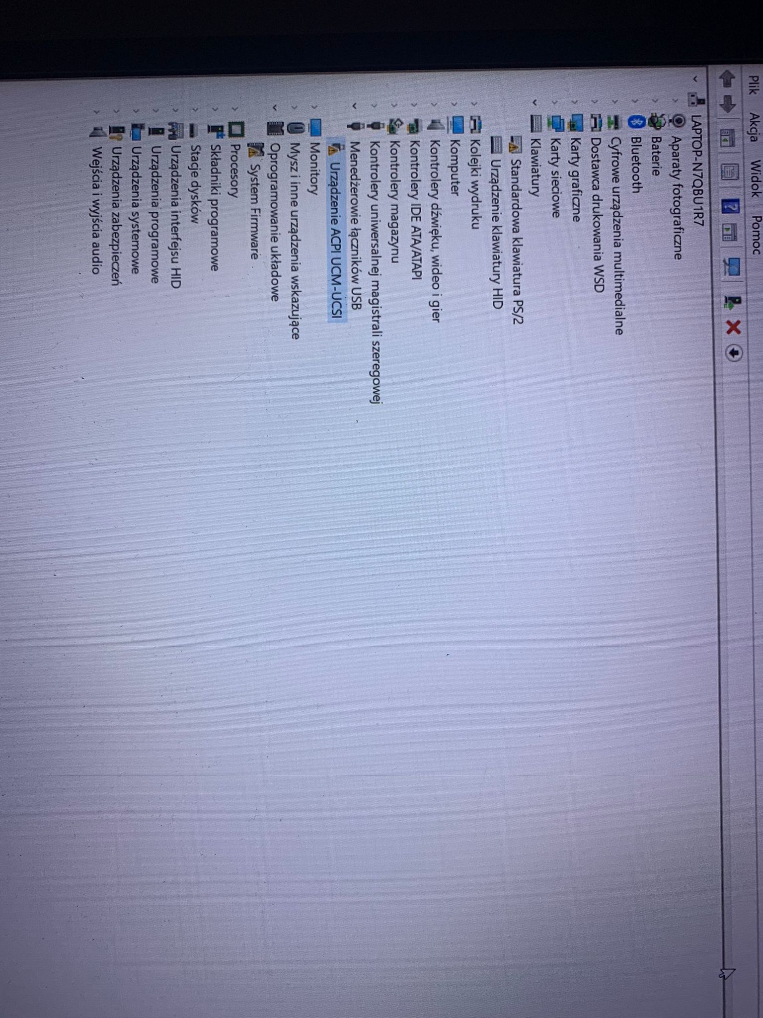 Laptop jak w temacie, trafił do mnie na wymianę wentylatora i czyszczenia układu chłodzenia. Po wykonaniu w/w czynności, laptop ma problemy z włączeniem się lub zawiesza się, jeśli już się włączy to nie działa klawiatura, pokazuje że ładuje, ale cały czas bateria ma 5% ( działa na samej baterii lub ładowarce). W menedżerze sprzętu wywala takie problemy jak na zdjęciu