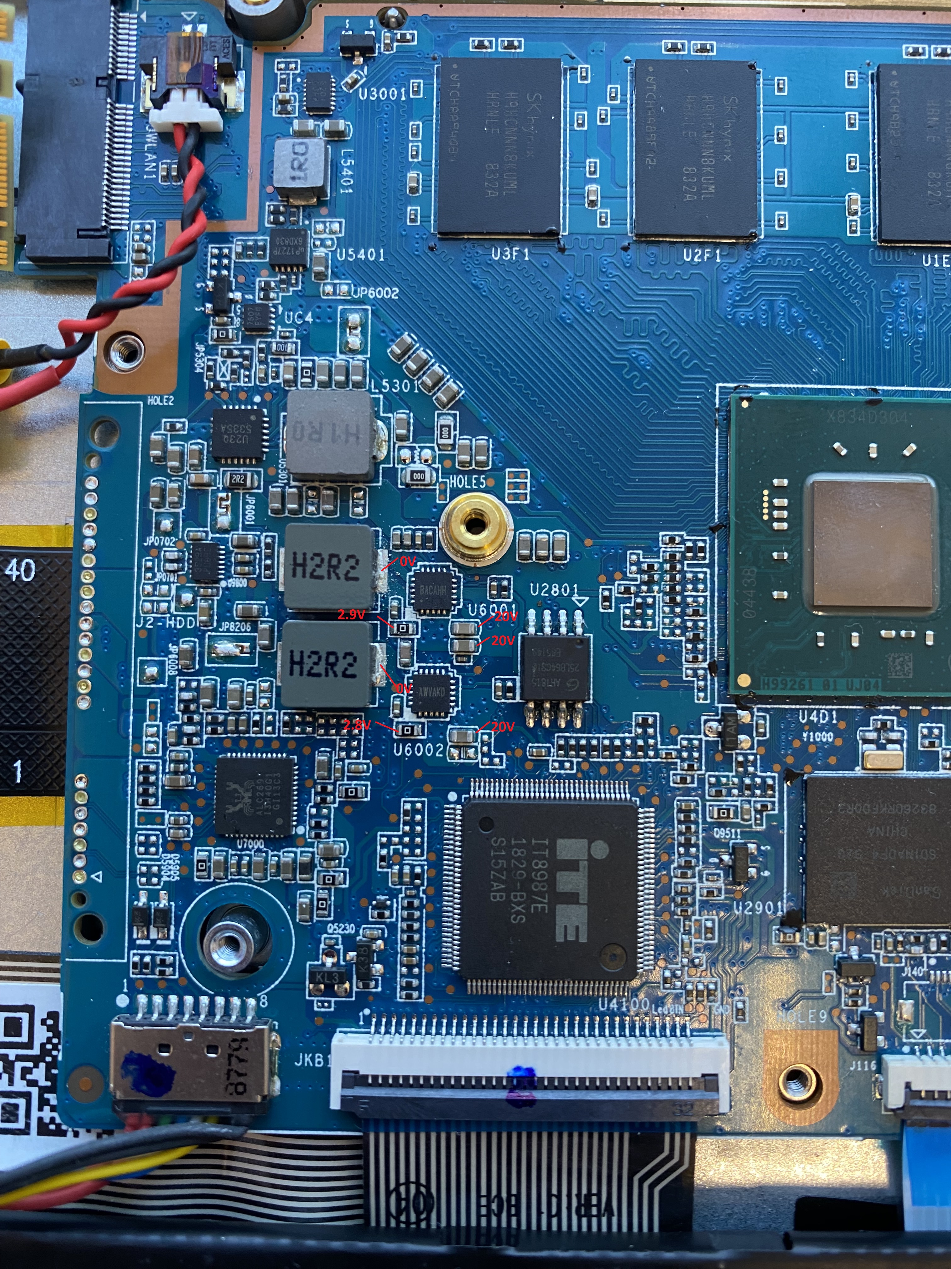 matic написав:Measure the voltages and resistances to ground on coils "2R2" located near the chips U6001, U6002.