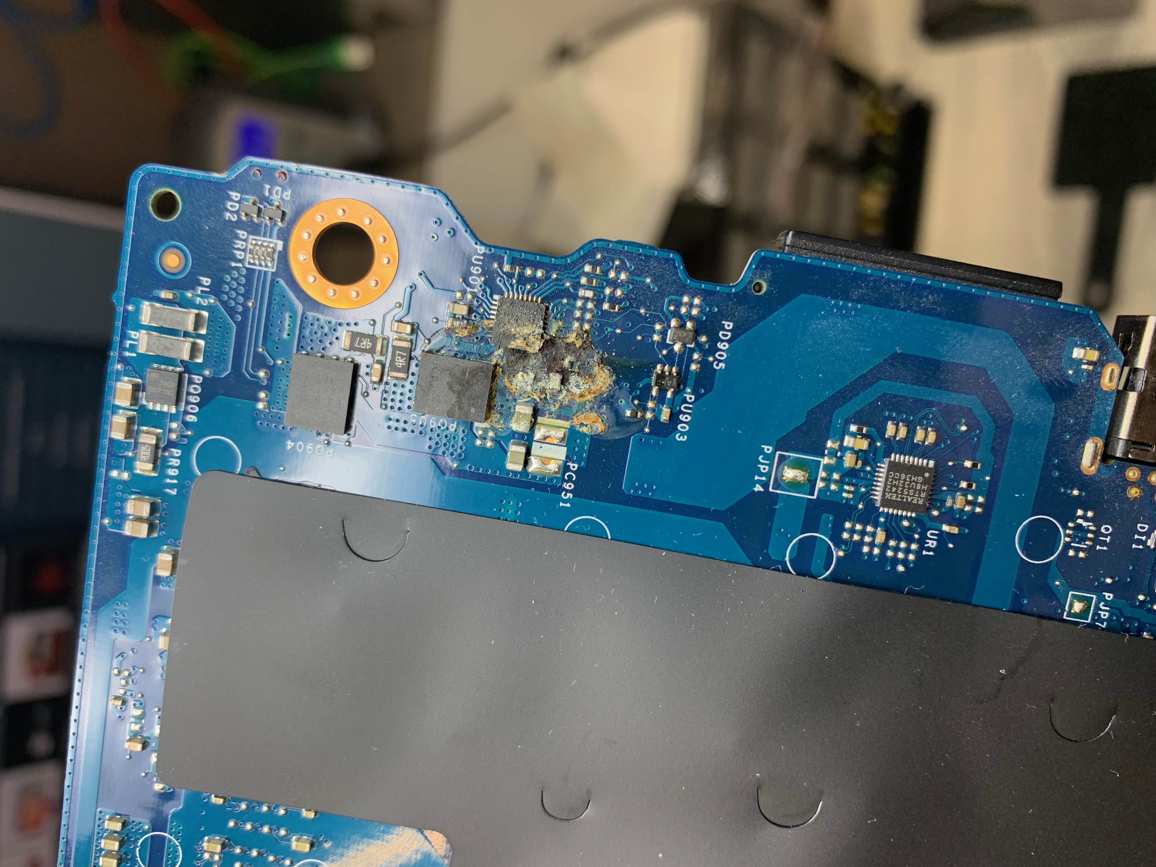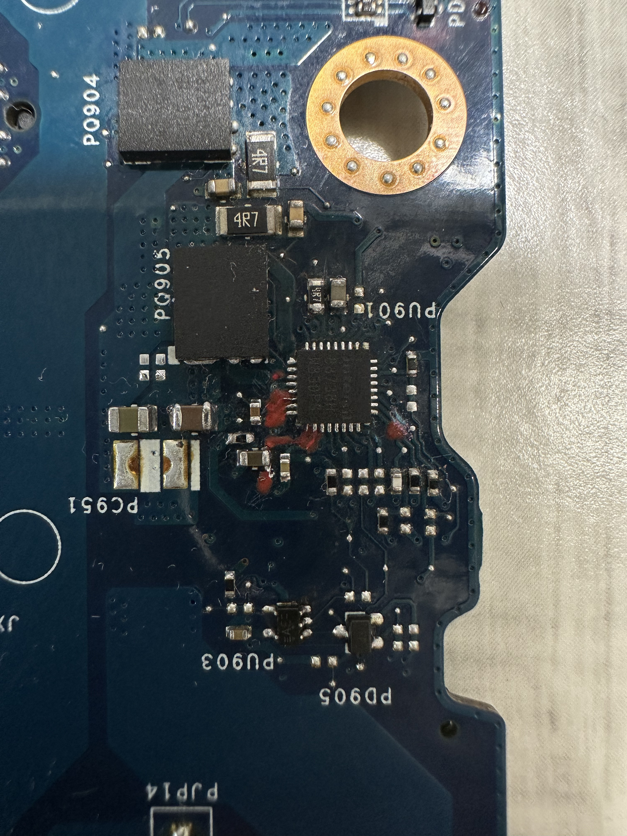 Witam mam laptopa po zalaniu w okolicy chargera, zdj dodam w zał. naprawiłem ścieżki, zalutowałem chargera, niestety jest tylko napięcie wejściowe na płycie. nie wychodzi żadne napięcie z mosfetów jakby nie miały sterownia, a z tego co widziałem to są chyba sterowane za pomocą kbc mec 5105