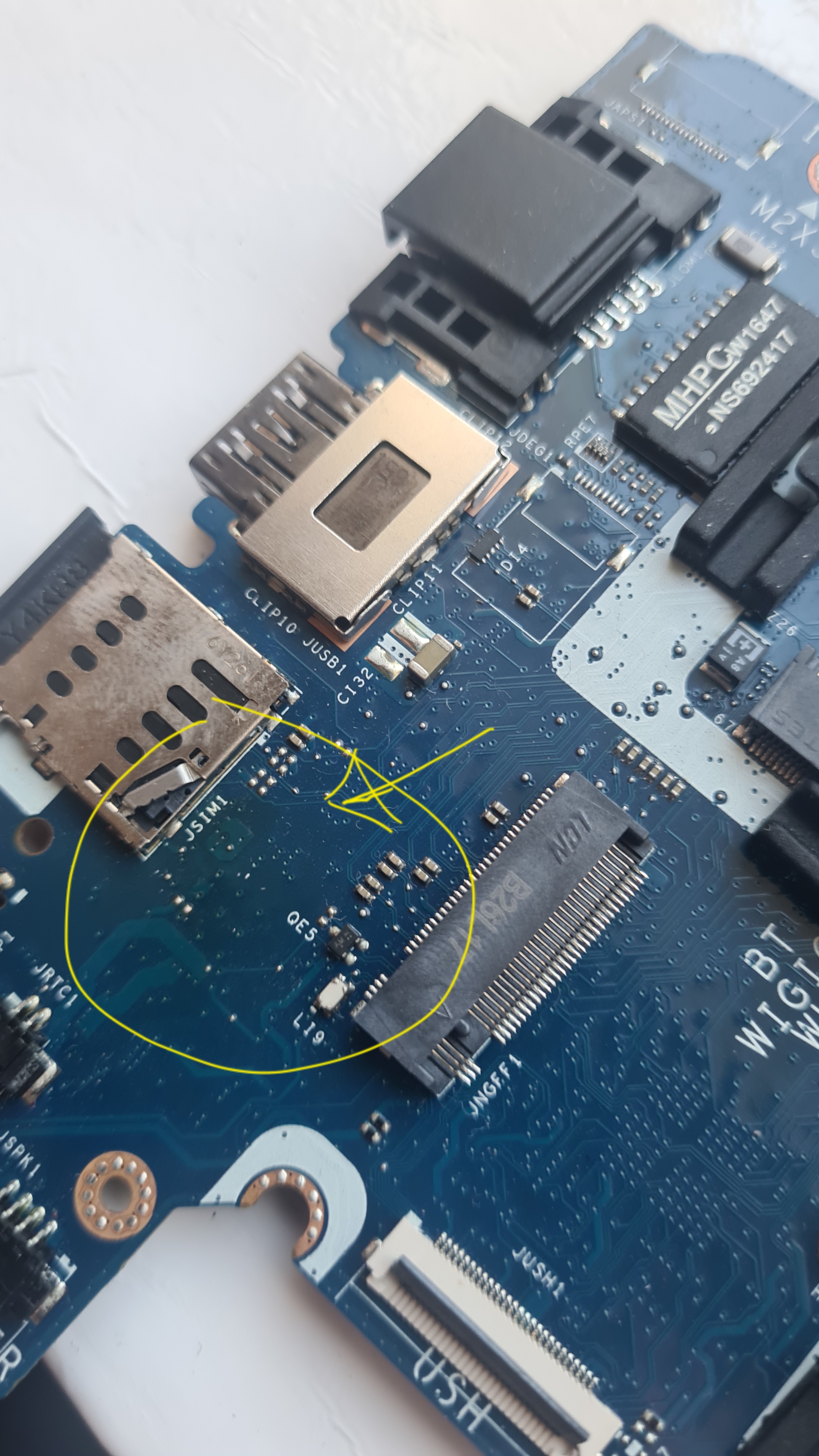 Po rozebraniu zauważyłem w miejscu chipu Realtek ALC3246 żółte przebarwienie i topnik (z drugiej strony płyty też) - ktoś grzebał?