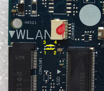 hello and thanks for your quick replie. i forgot posting here, because of xmas preperations. there was no conduction between 1 and 2 but i still ordered the keyboard to complete the repair and see how it effects the system. looks like pin 1-2 is 2,4ghz wifi and bluetooth since bluetooth is dead and 2,4ghz wifi got bad interruptions. BUT 5ghz is working perfectly. so i skipped the soldering part and bought me a BT dongle for 15 bucks and keep using 5ghz wifi. 8-)
