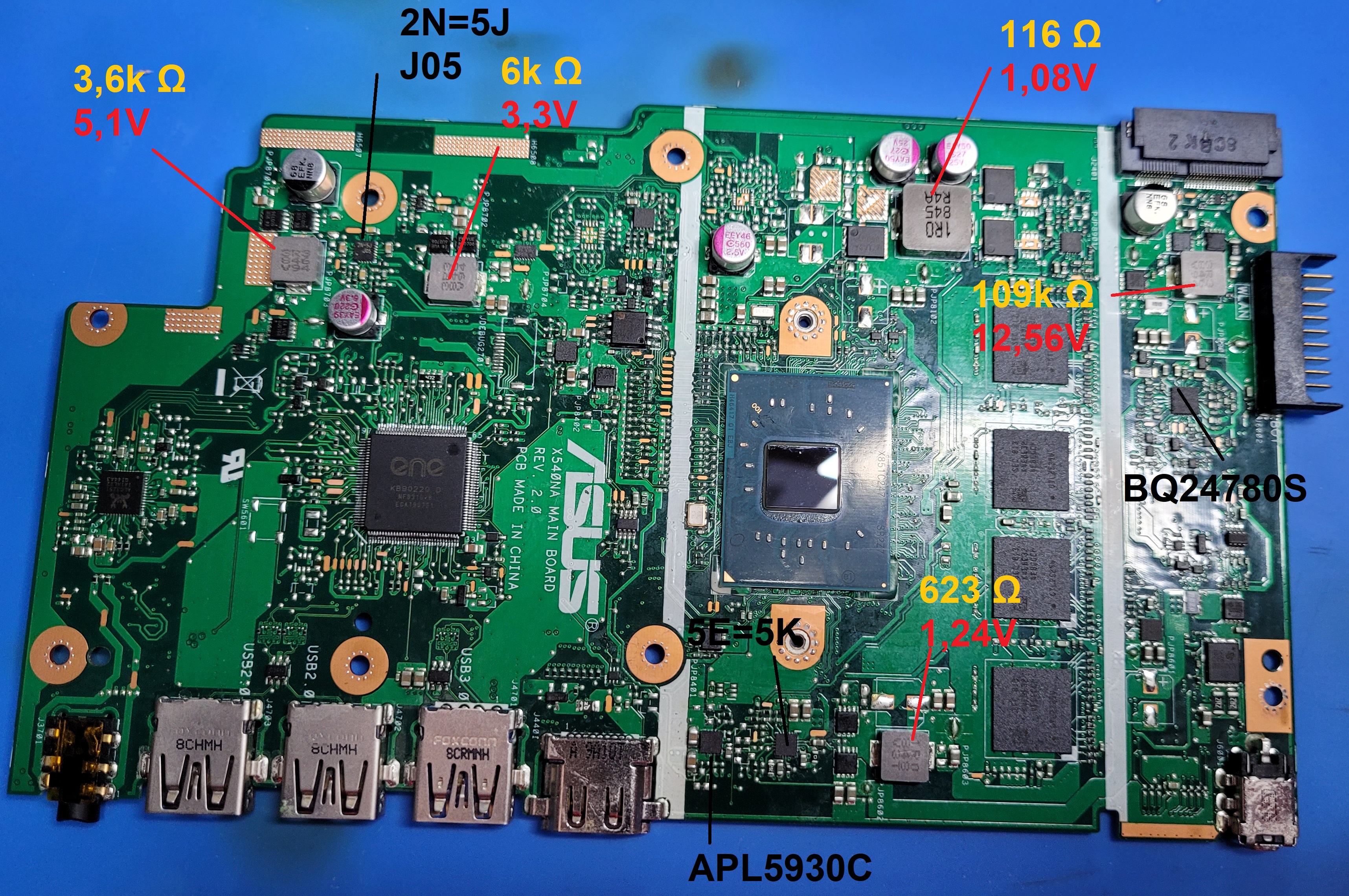 Zrobione zostały pomiary cewek, układów, wymieniony KBC na ENE KB9022Q D (zaprogramowany poprawnym wsadem), zrobiony wsad bios.