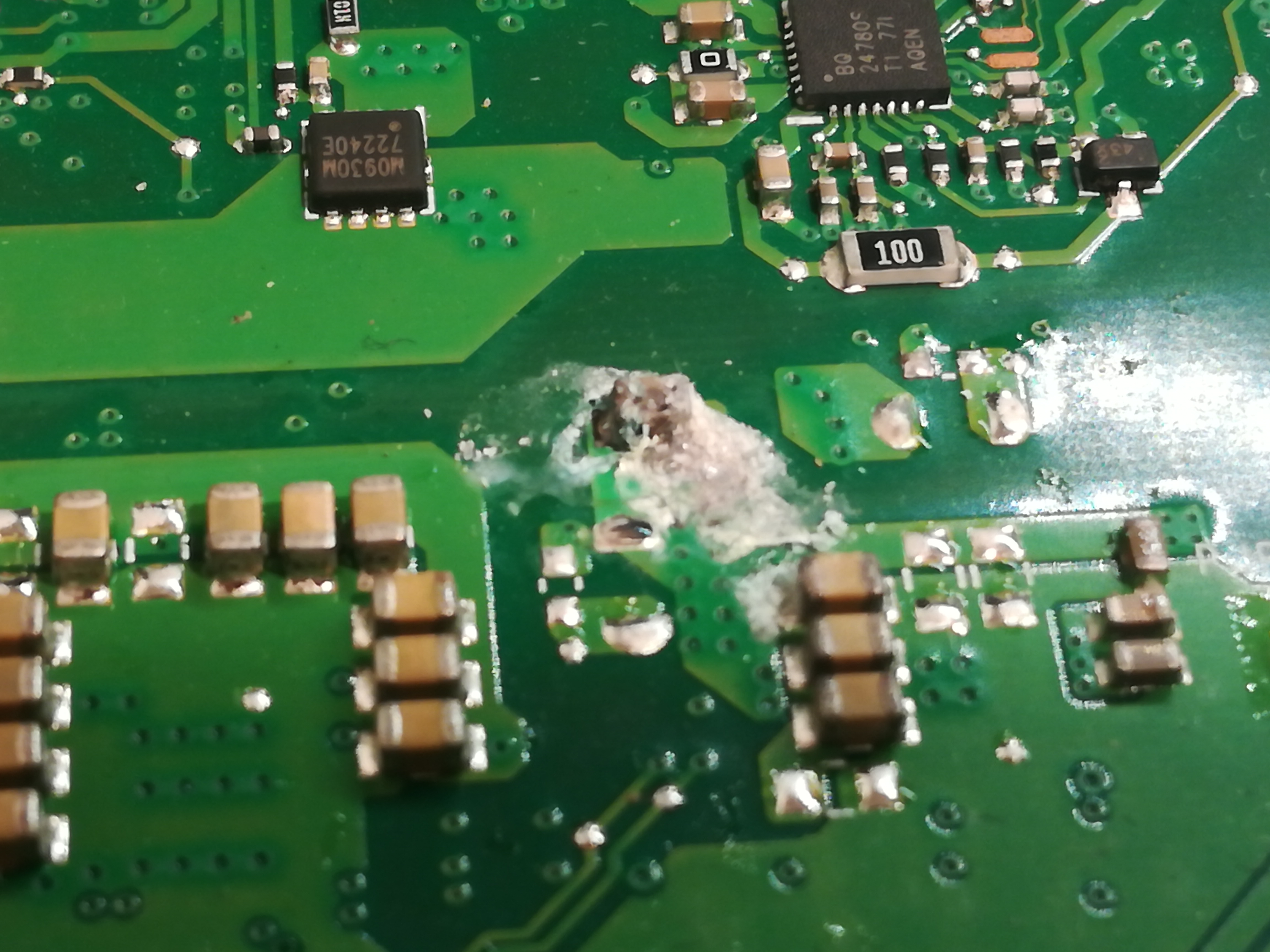 I'm happy that you all are sharing knowledge and trying to help, but afeter many hours with this board, I have to drop this job. Simply not worth the effort this time. Liquid damage was so wide in this case and potential issues can be chained here, I'm adding some pictures so you can see what happened.