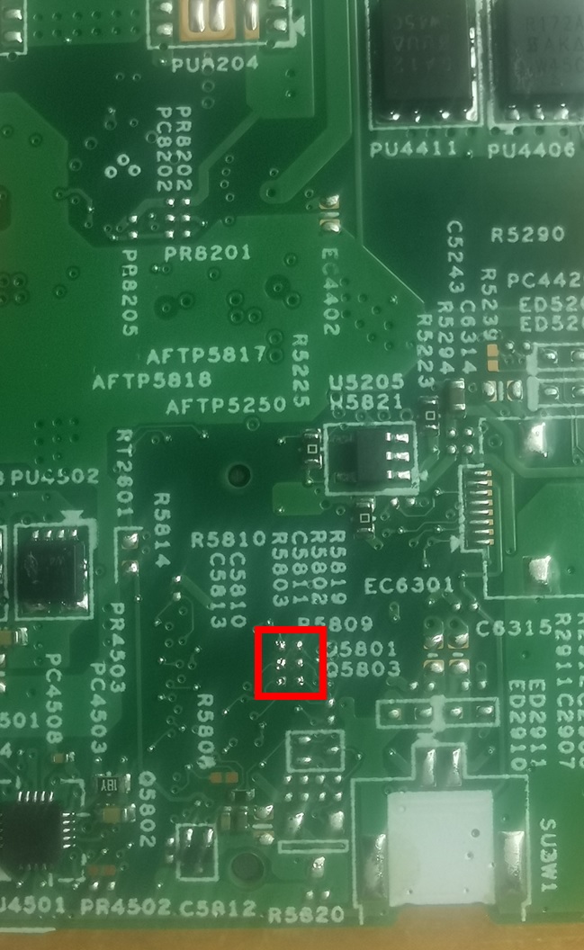 Jest to miejsce po drugiej stronie płyty pod gniazdem WiFi