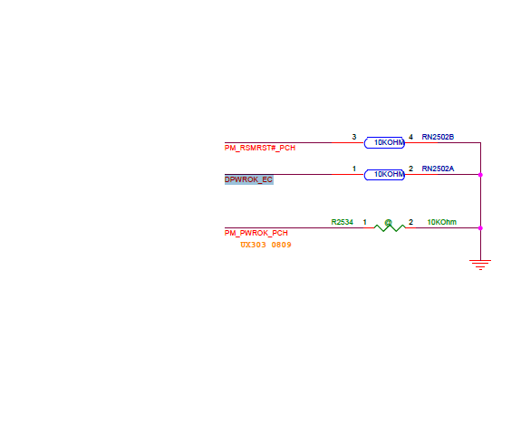 Linia DPWROK_EC jest obciążona rezystorem więc wynika z tego, że rezystancja pinu 97 musi być duża.