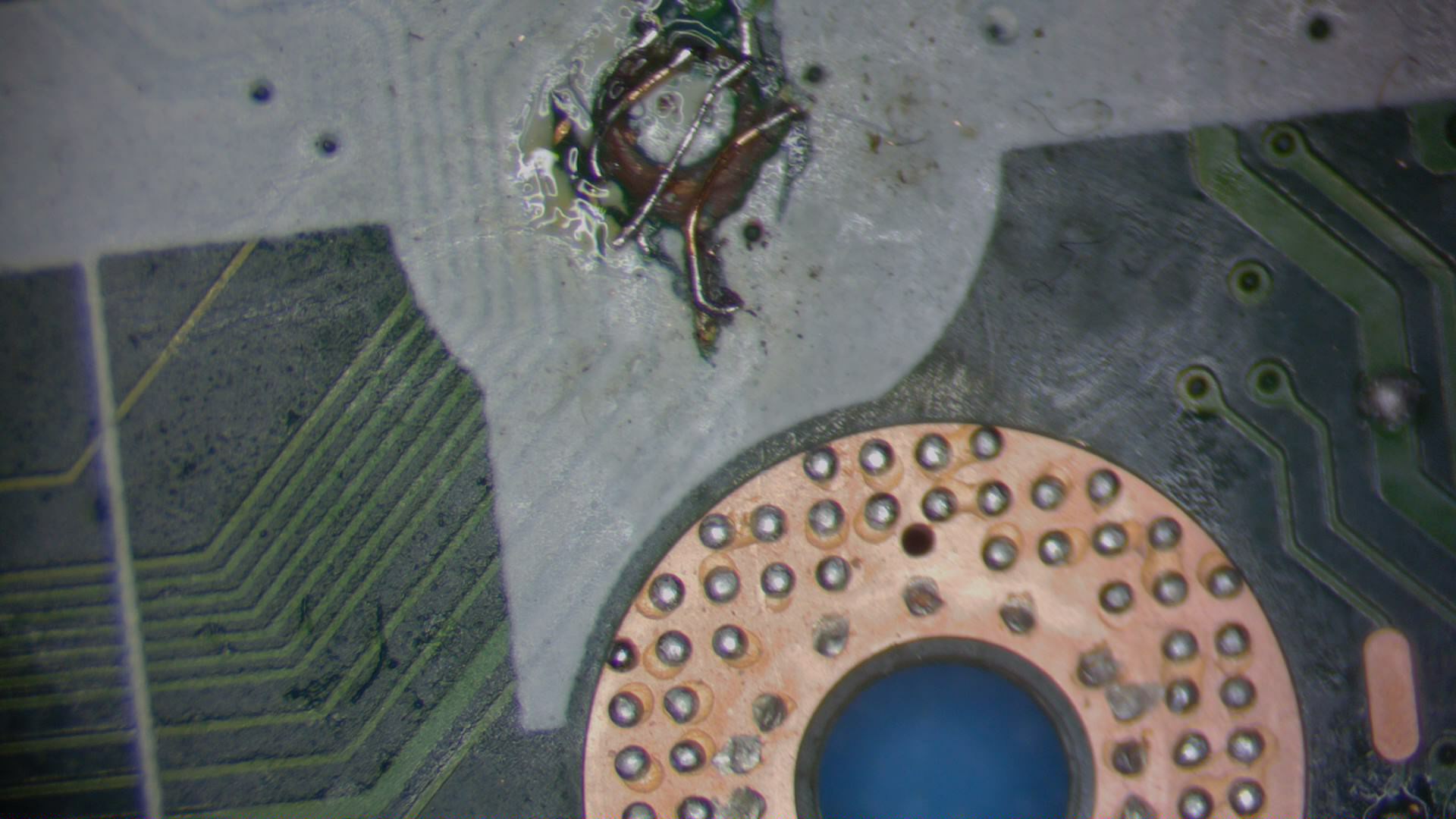 repaired the damaged tracks and solved the problem. For those who run into the same problem, I attach photos of the repair