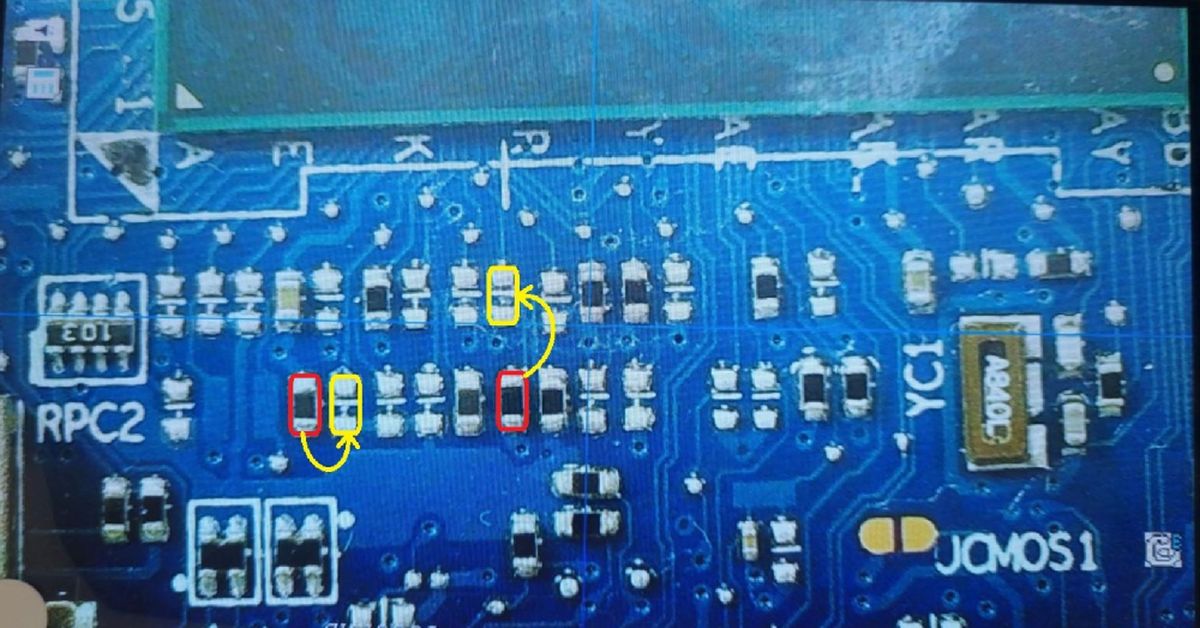 Please, post a clear picture of marked area of the board.