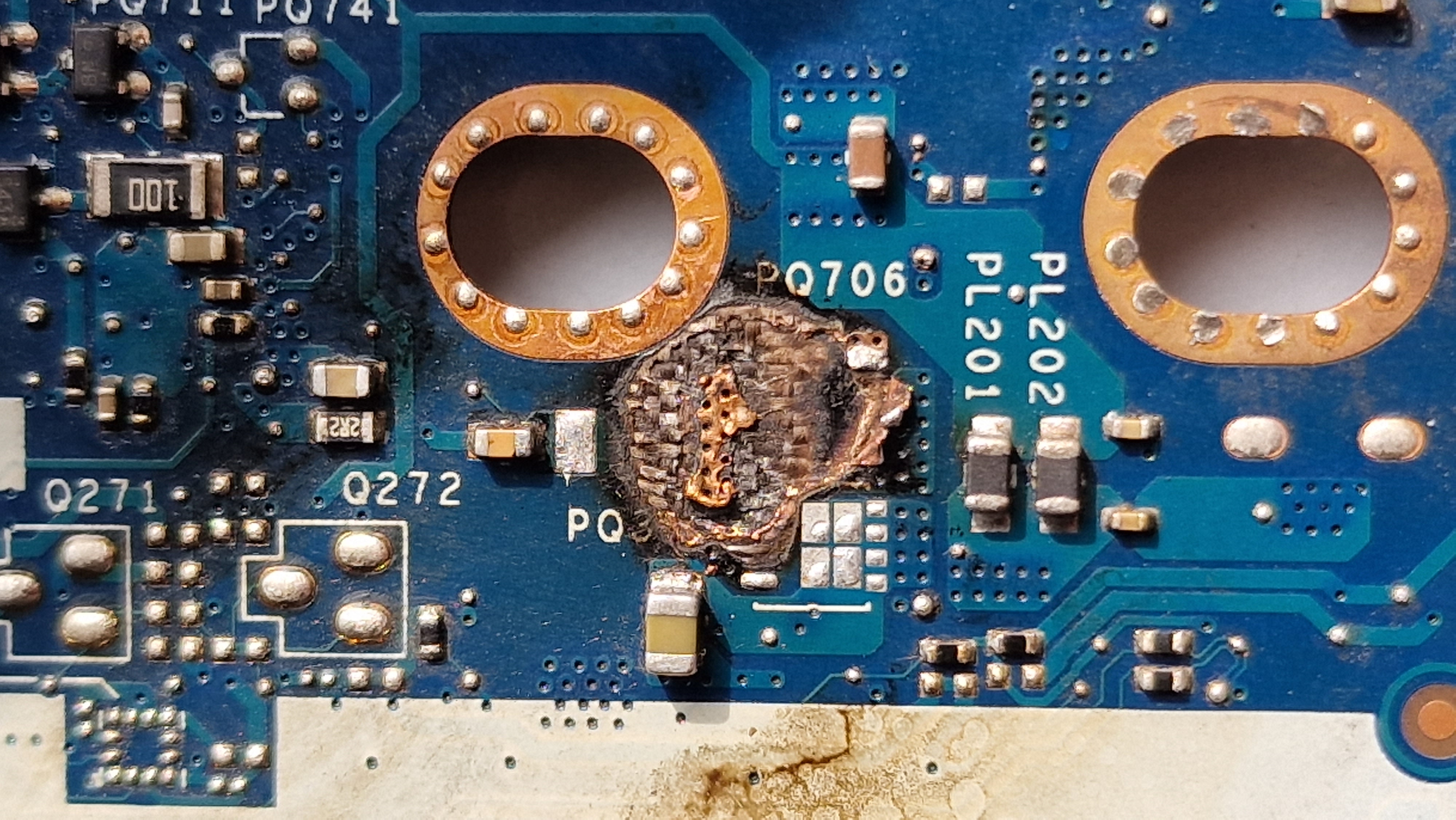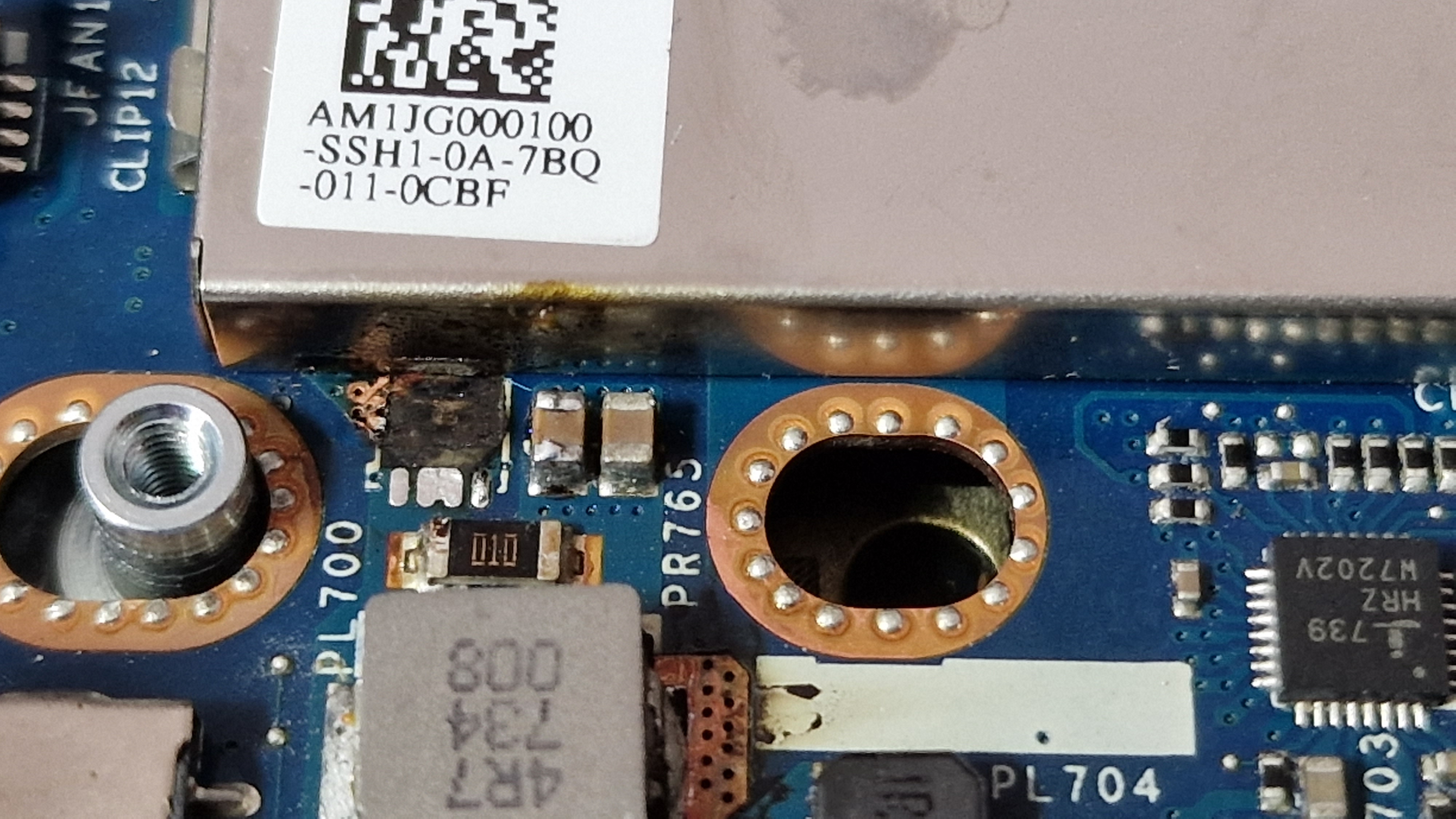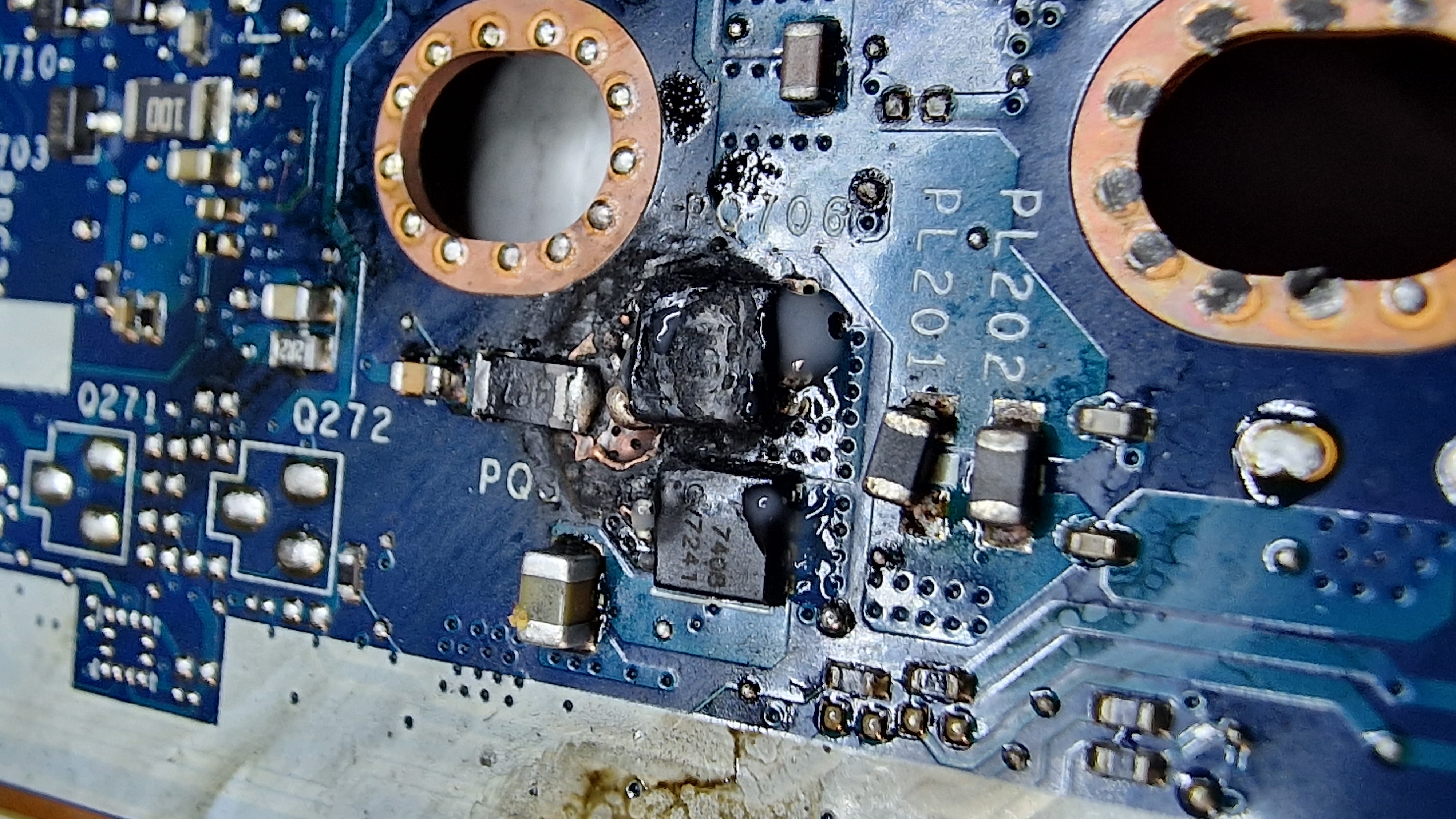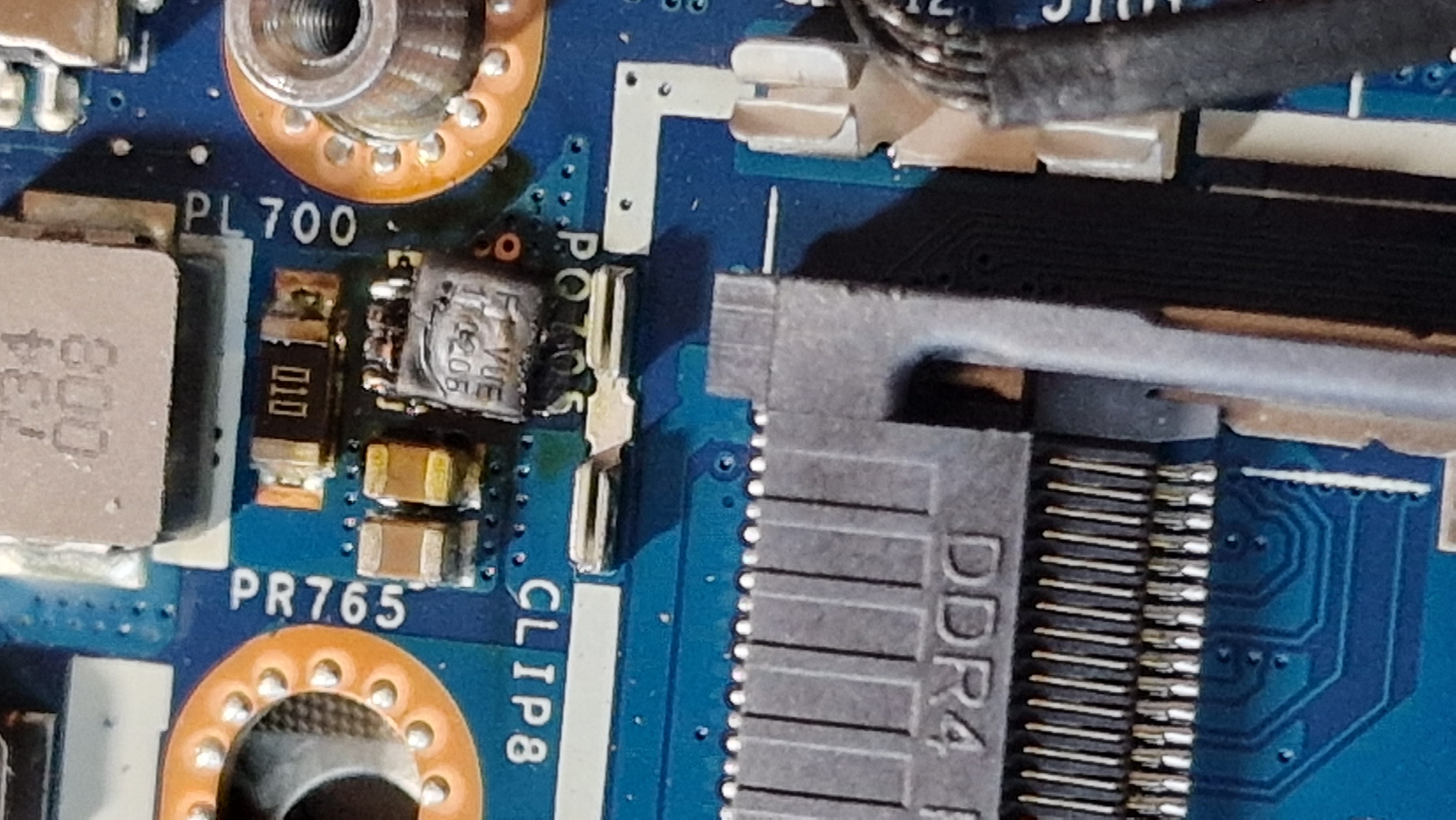 Miało być 10 minut a skończy się mam nadzieję na kilku godzinach. Podczas dołożenia dysku oraz wymiany ramu, w tym modelu jest blacha wciskana zakrywająca ram. I jakoś niefortunnie nie zauważyłem że blacha nie weszła w swoje zaczepy. Podczas skręcania laptopa poczułem smród, blacha zwarła główną linię zasilania na mosfecie PQ705, zwarcie poszło też na drugą stronę płyty wypalając kolejne 2 mosfety oraz laminat. Części wylutowałem, a raczej powycinałem bo miedź sie zespawała z układzikami i oskrobałem dookoła bo wszędzie dookoła zwierało się do masy między warstwami płyty. Na całe szczęście wszystko działa na przewodzie bez problemu, baterię widzi, ale oczywiście nie ładuje. Na wejściu PQ705 jest 20V, więc myślę że to prawidłowe napięcie ale też nie mam pewności.