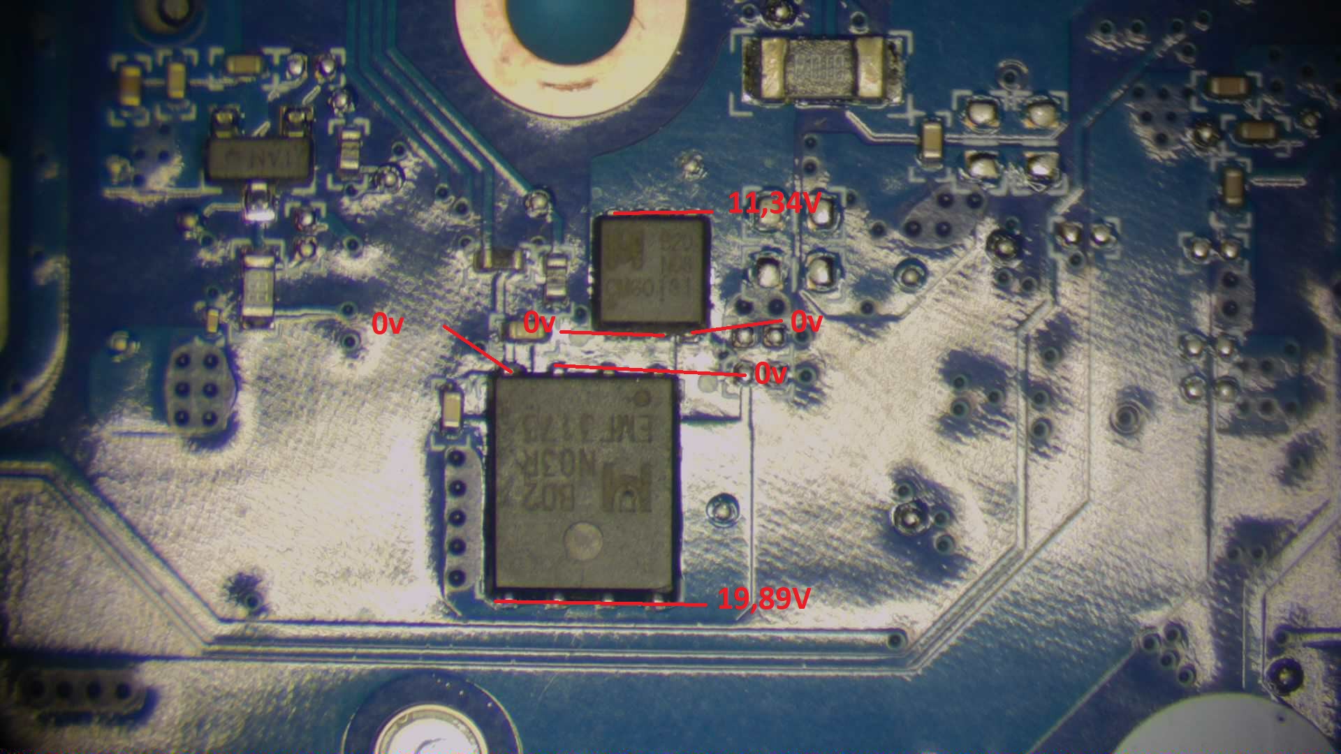 Good day forums. I get this HP laptop with the defect that the backlight on the screen started to flicker quickly. After a few reboots the fault seemed to have disappeared and then returned. I updated the bios, graphics drivers but nothing. I disassembled the screen and cleaned the LVDS cable both on the lcd side and on the mainboard side. The defect seems to have disappeared but I noticed that the battery is not being charged, the word charging remains but the percentage does not rise, on the contrary, if I unplug the dc connector the battery runs out. I disassembled the mainboard and noticed a burnt diode, in the photo. I replaced it taking it from a similar board ( DAG7BFMB8DO REV :D) even if it was rotated 180° on the similar board. I mount the new diode but it does not solve the problem, I also noticed that the motherboard does not always detect the inserted power supply, in fact in the first mosfet I find the voltage of 19V on pins 5,6,7,8 but on the source 0V, in the pin 4 (gate) there is no piloting. Sometimes, however, after a while, the orange charging LED lights up but obviously it doesn't charge.