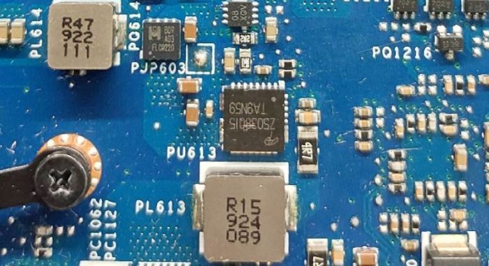 The PU613 is a DrMOS chip AOZ5038QI5 or FDMF3035 depending on which chip the PU610 is. Both chips - PU613 and PU610 must be the same.