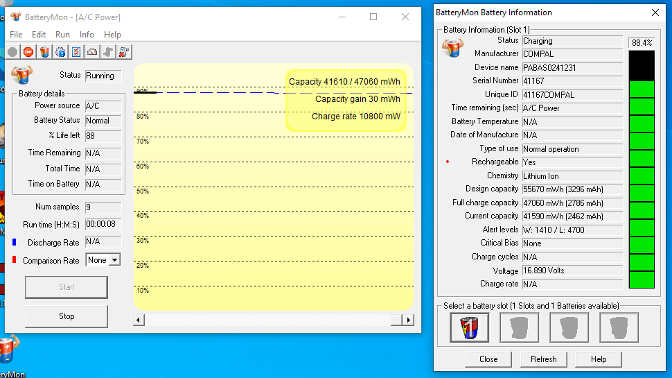- Install a Battery Mon software and post a screen of "Battery Info" when the battery is charging and when it's not.