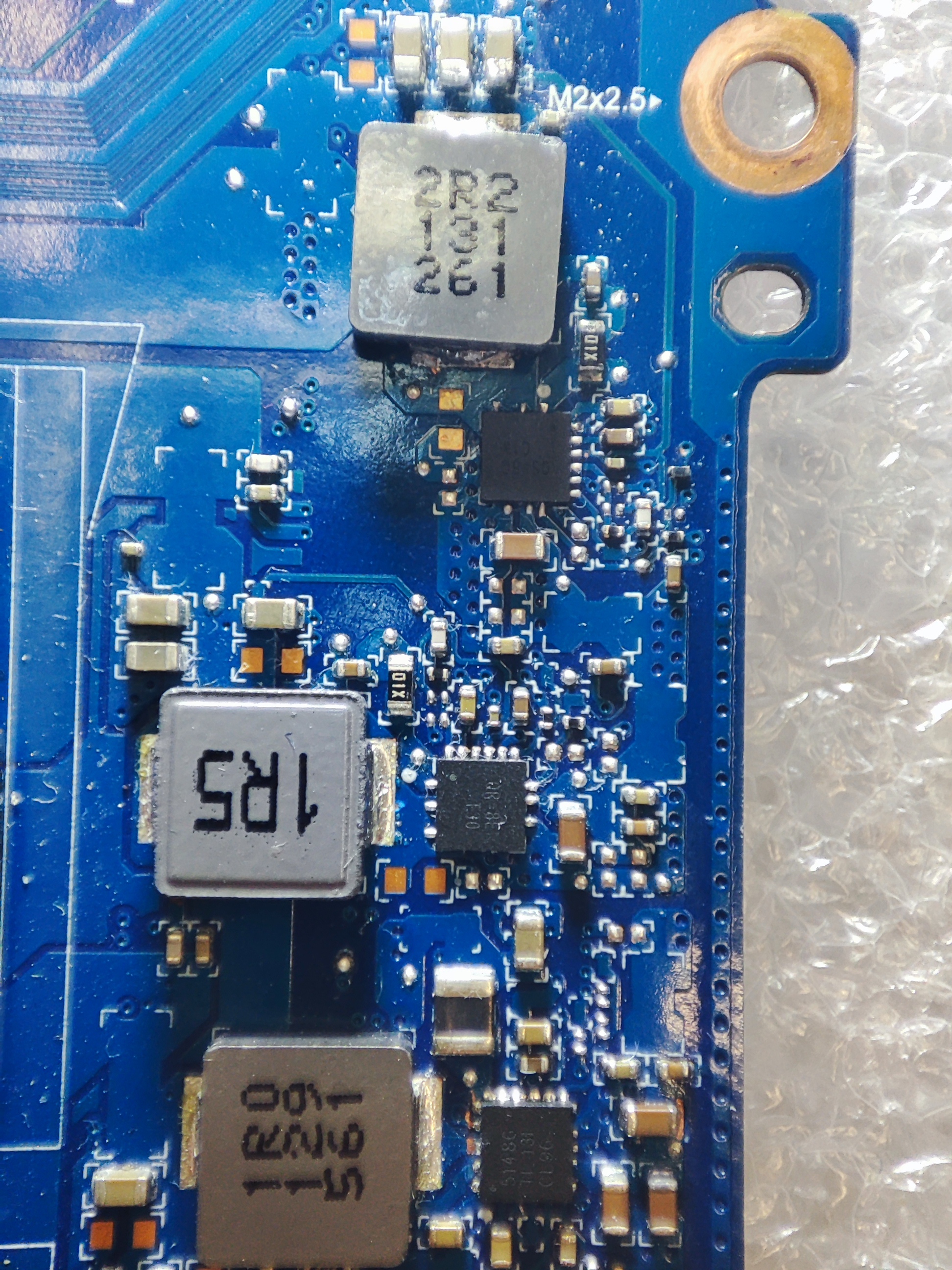 Termowizja wykazała, że w tym czasie nagrzewa się przetwornica 5V PU8601 (RT6318C) i stygnie, dając na cewce PL8601 dziwne napięcie 4,2V.