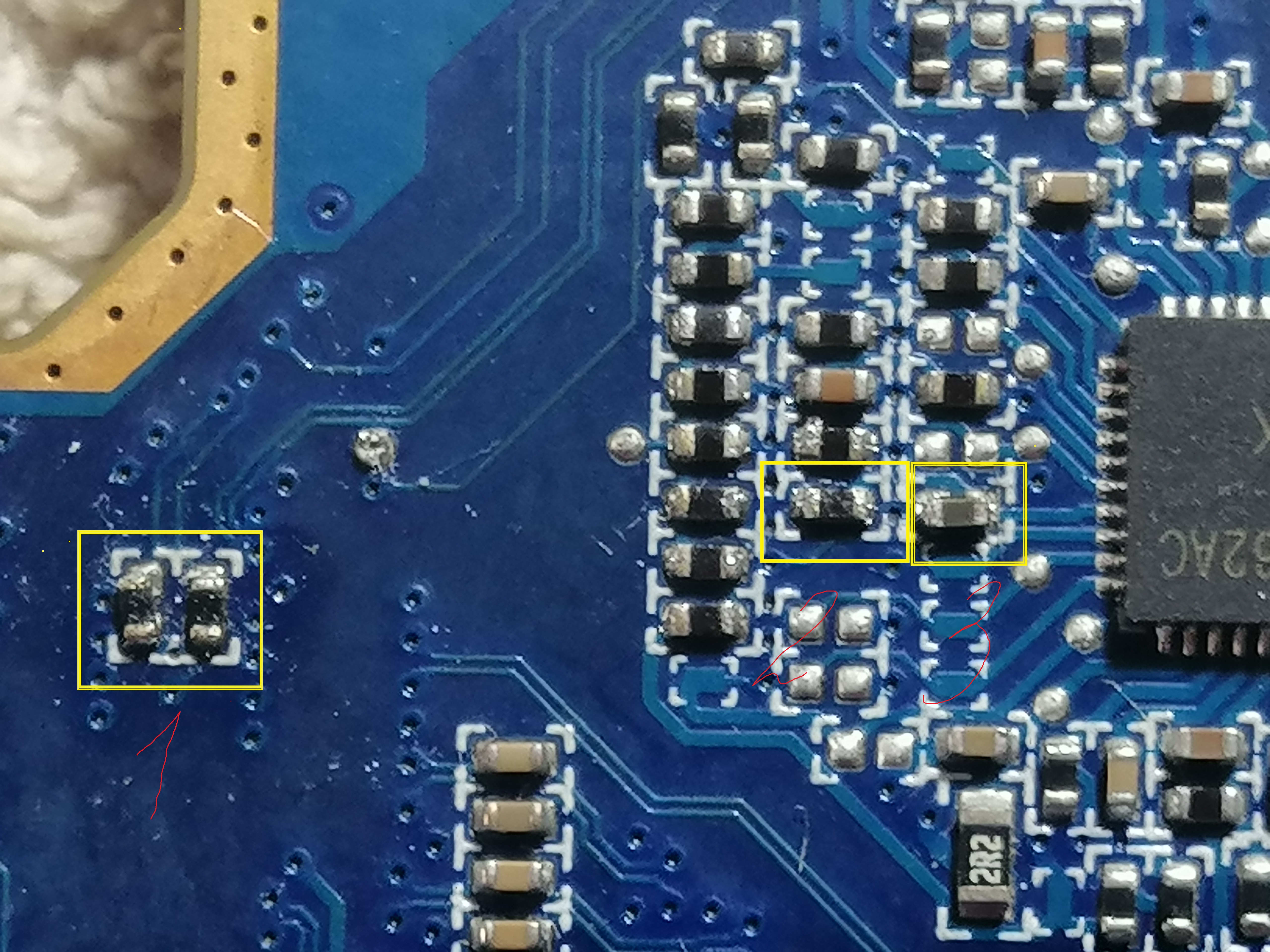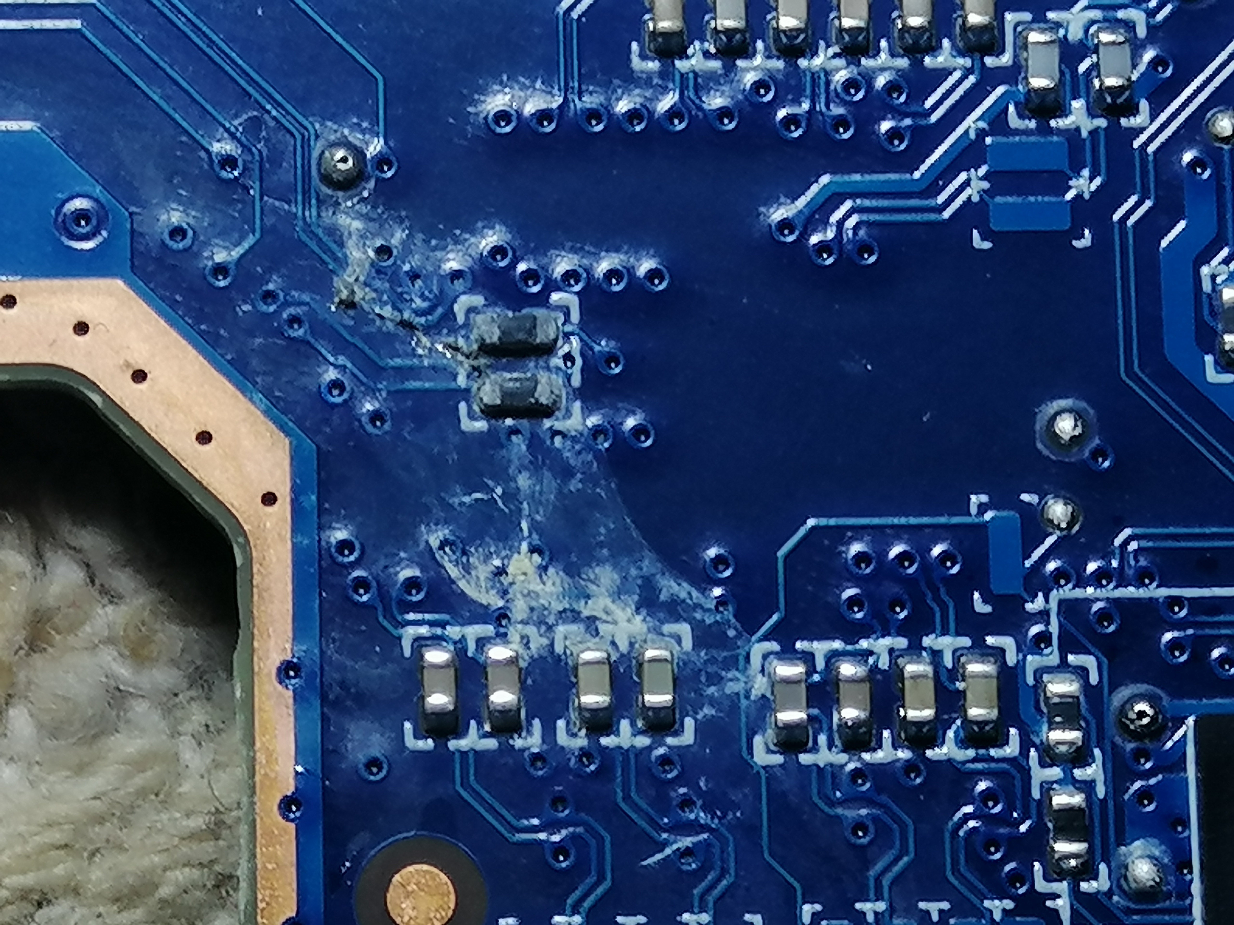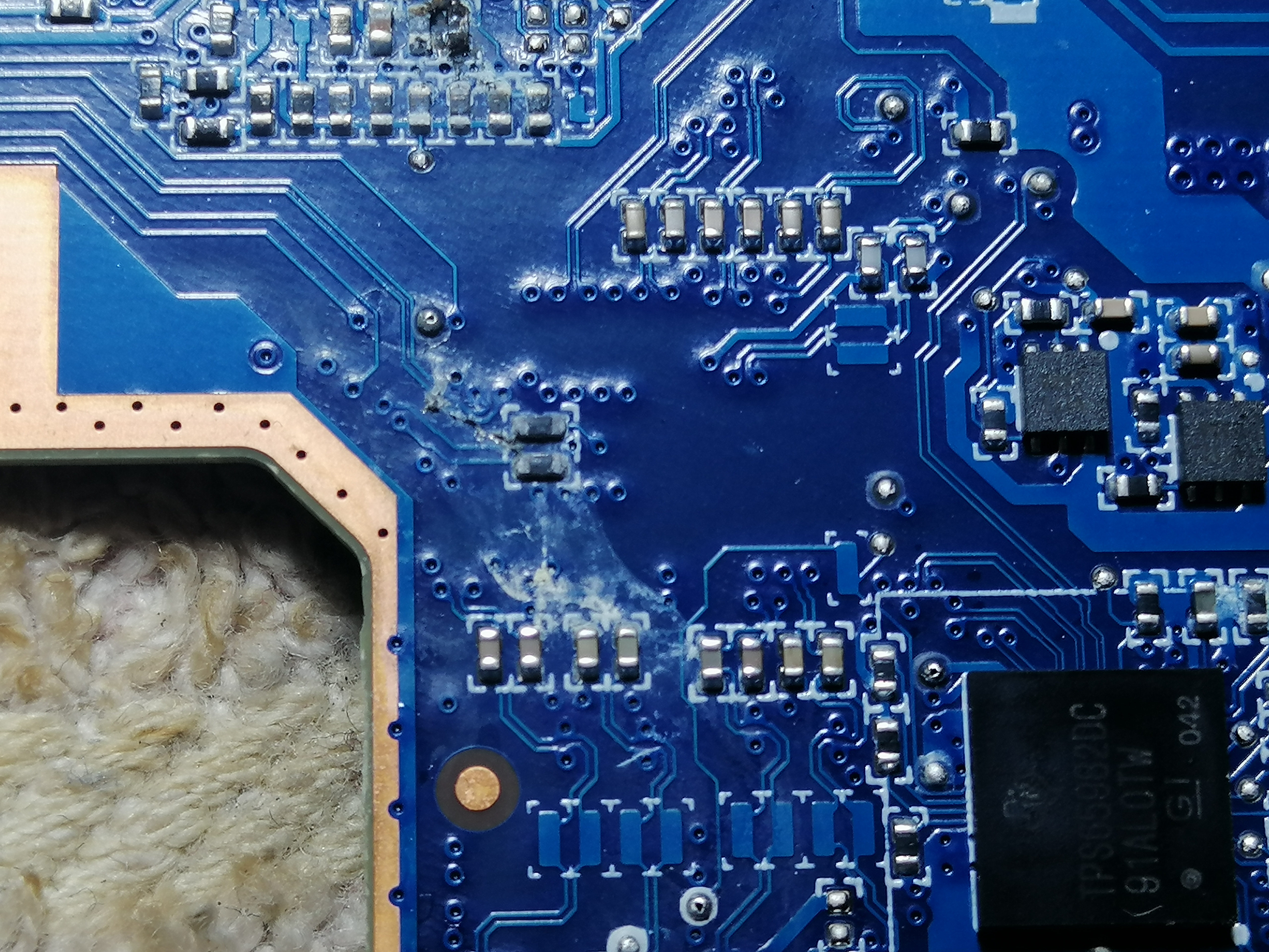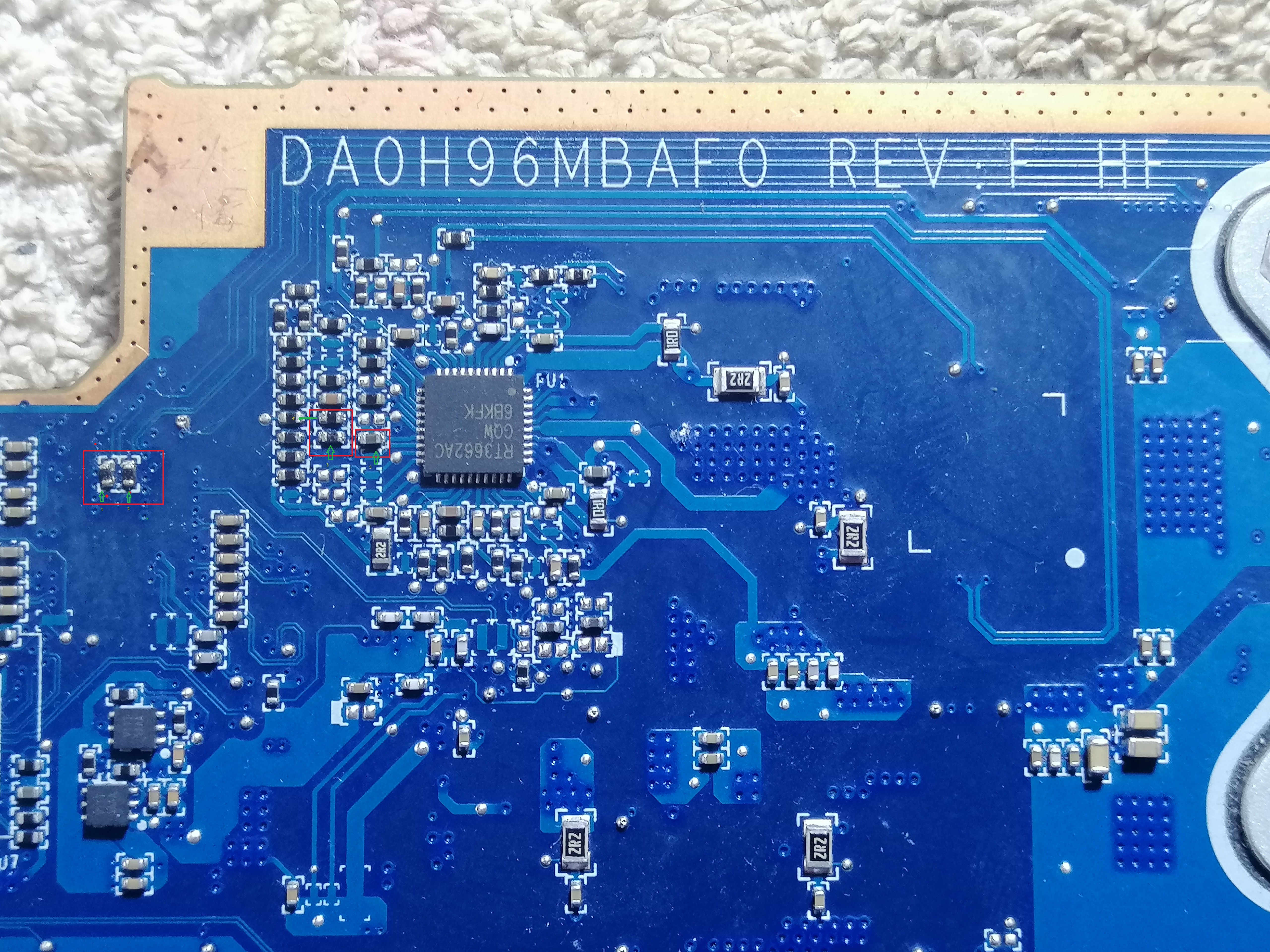 Nie ładował baterii,ładowanie naprawiłem lecz zostały wysokie obroty wiatraka.Przeżarte zostały 4 elementy przy rt3662ac więc je wymieniłem na oko nie znając parametrów.Teraz laptop ładuje,włącza się z wysokimi obrotami wiatraka ale nie daje obrazu.Niestety Procesor jest całkowicie zimny.Zamieszczam zdjęcia wymienionych układów może ktoś zna ich wartości bo niestety schematu nigdzie nie ma.Może przy lutowaniu wysypał się sam RT3662AC?Ale chciałbym zacząć od wymienionych elementów po których laptop przestał wyświetlać obraz.