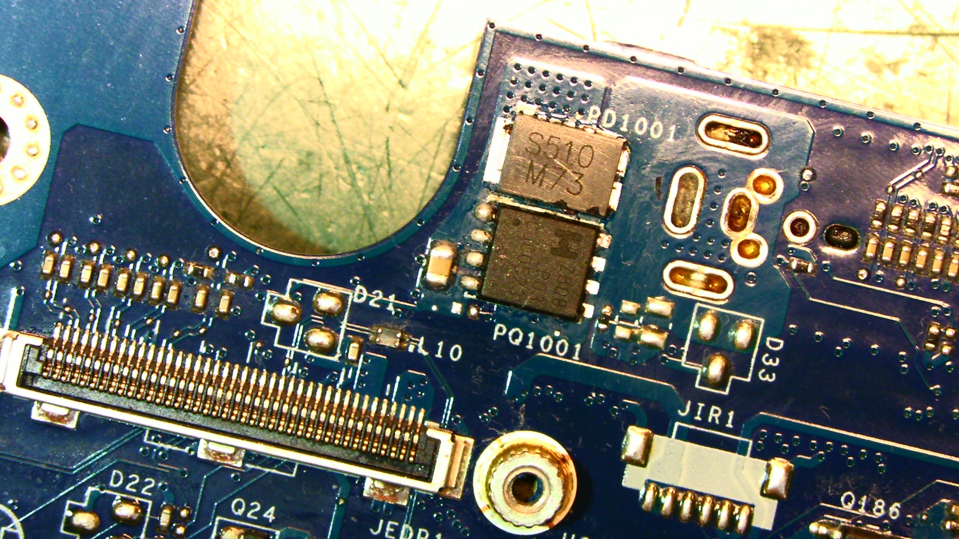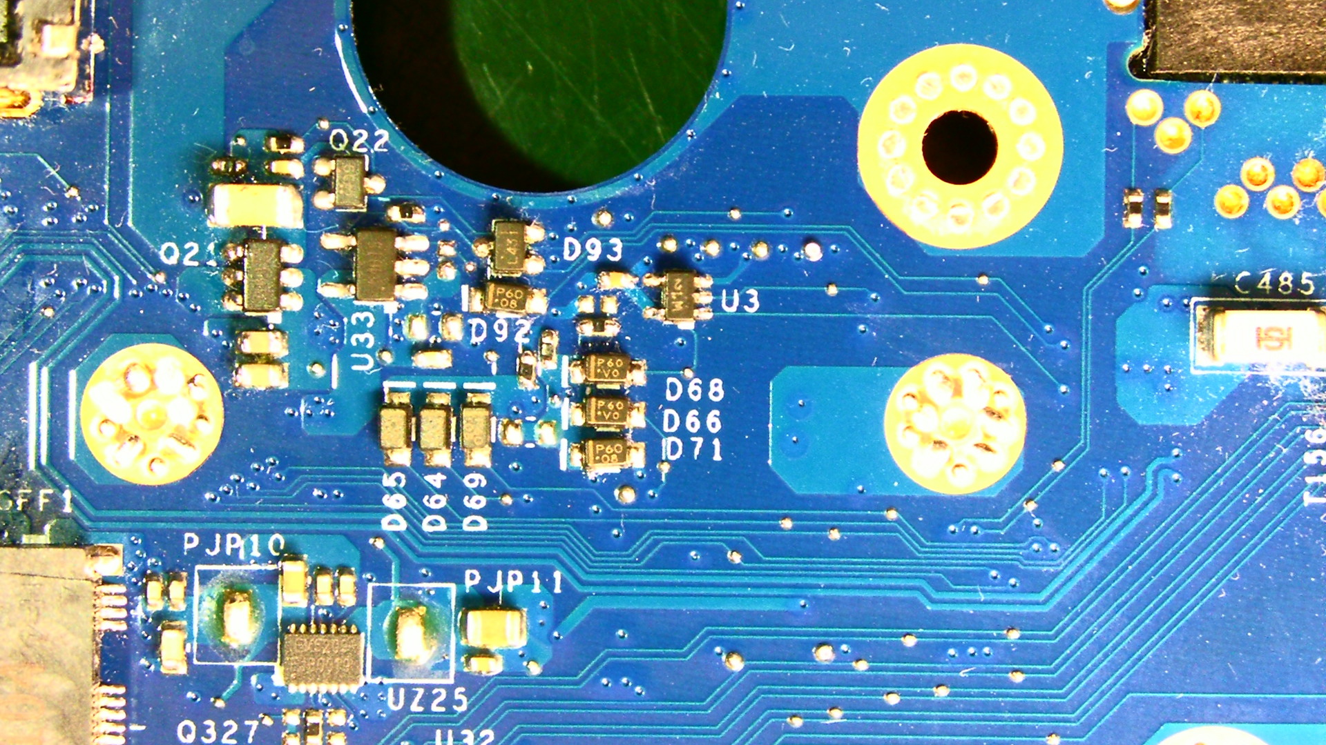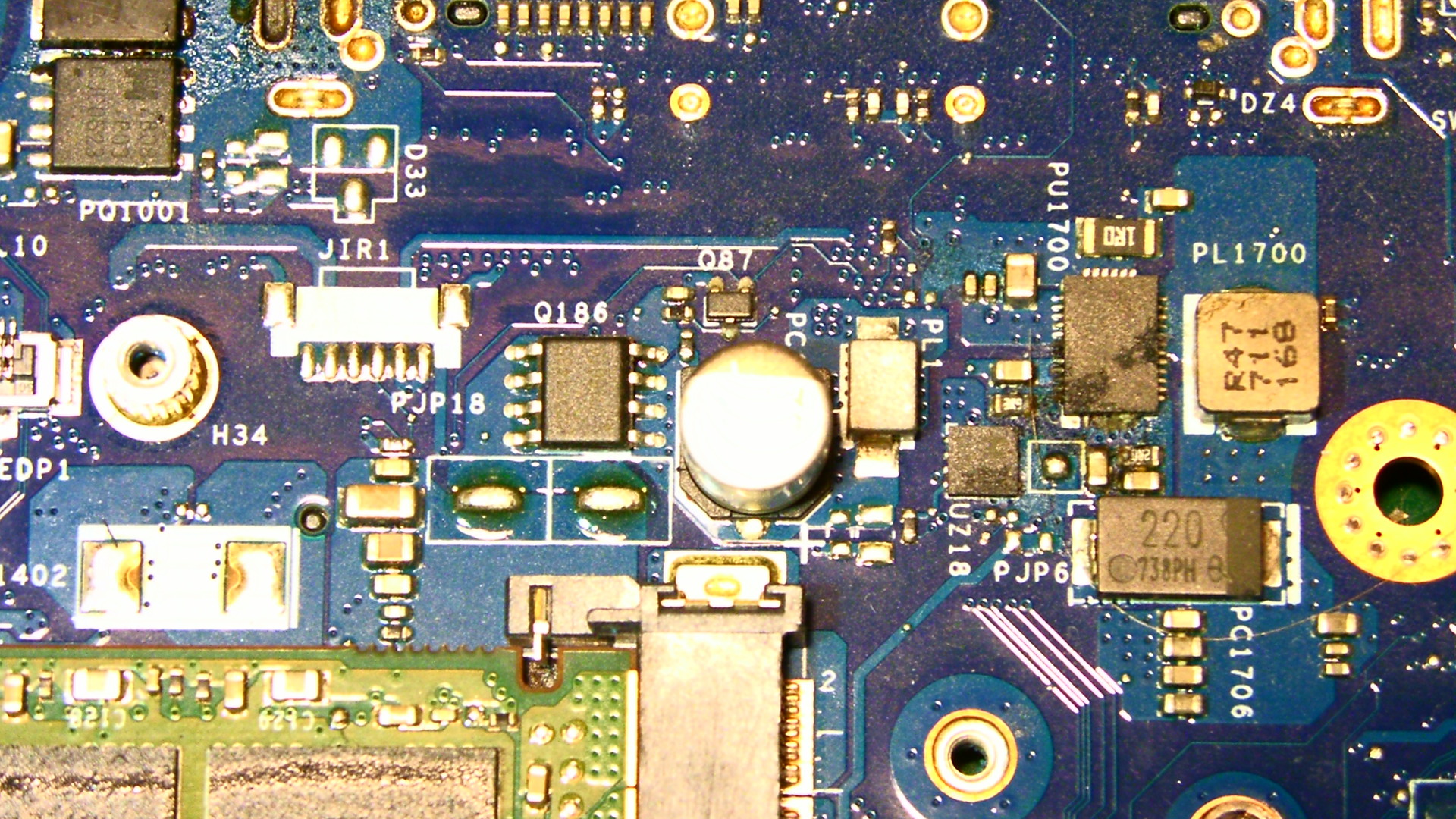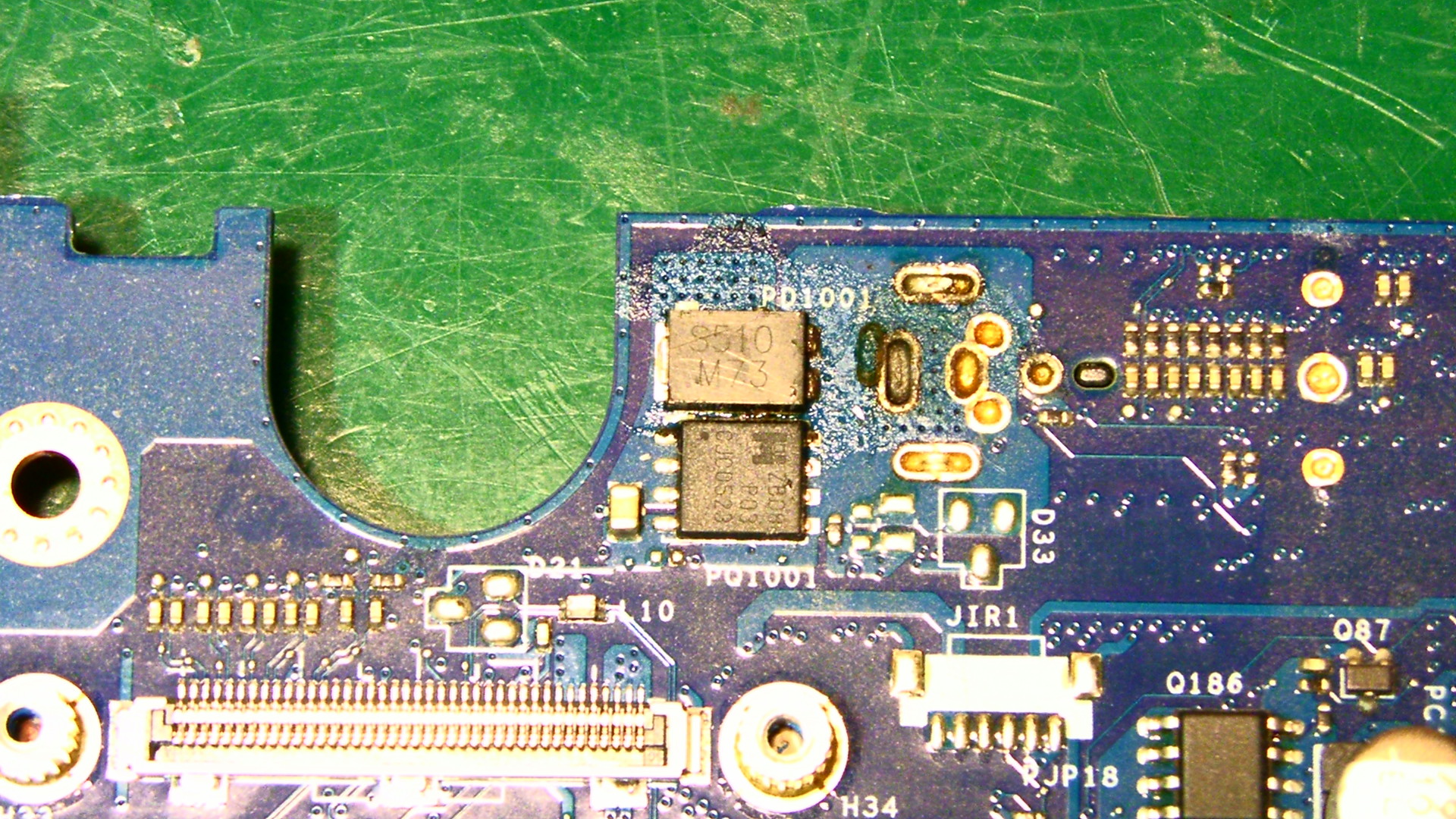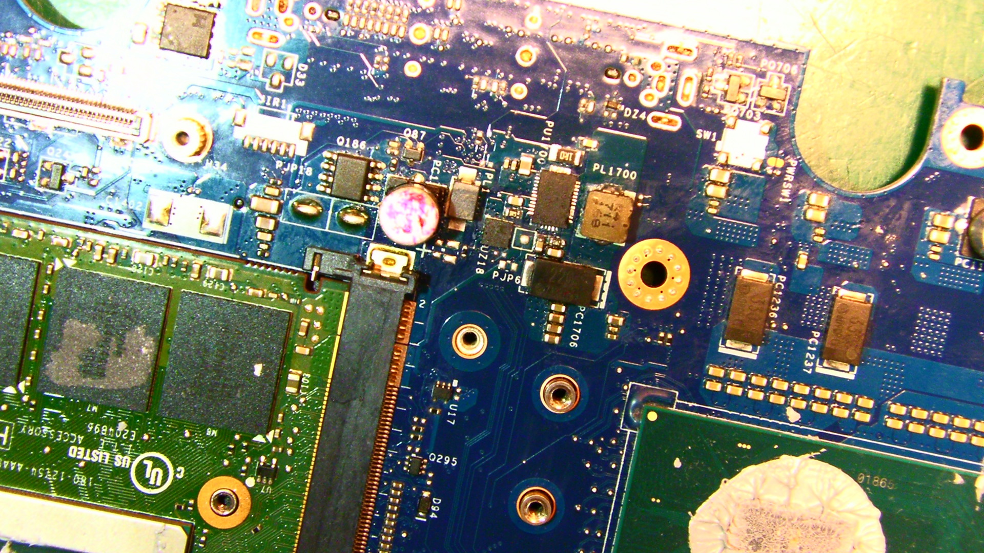 Oznaczenia na płycie AAPB0 LA-C551P REV:4.0 (A03). Laptop trafił na serwis z usterką wyłączania się po kilku minutach obciążenia np. grą. Okazało się, że uszkodzony jest mniejszy wentylator, zamówiony został kompletny, oryginalny układ chłodzenia z della i pod tym kątem wszystko wróciło d normy. Problemem jest natomiast brak możliwości włączenia i wyłączenia sprzętu przy pomocy włącznika. Na płytce włącznika napięcie po wciśnięciu włącznika spada z 3V do 0V.