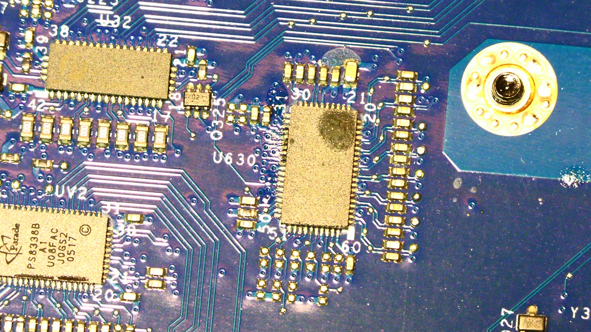 Zdjąłem wszystkie folie z płyty i okazało się, że jeszcze dużo zalanych elementów znalazłem (z informacji wynikało, że zalany był kiedyś sokiem).