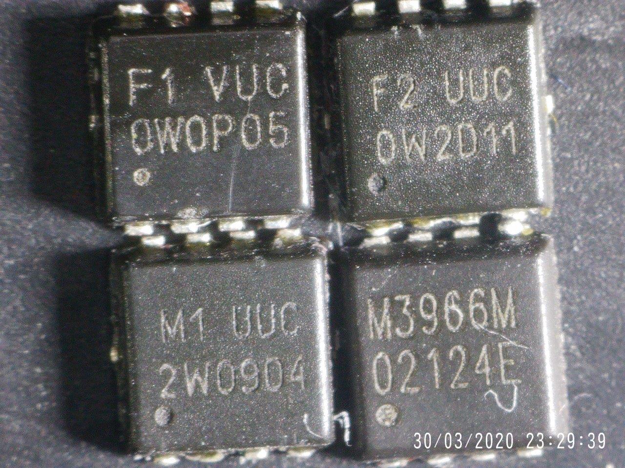F1 zidentyfikowałem jako: PE600BA (PQ18). QM3966M3 to PQ20. Niestety Który to PQ19 a który PQ21 niestety nie potrafię znaleźć. PQ19 według BV to 30V 28A a PQ21 to 30V 44A. Niestety nie mam pojęcia jakie to mosfety F1 i F2.