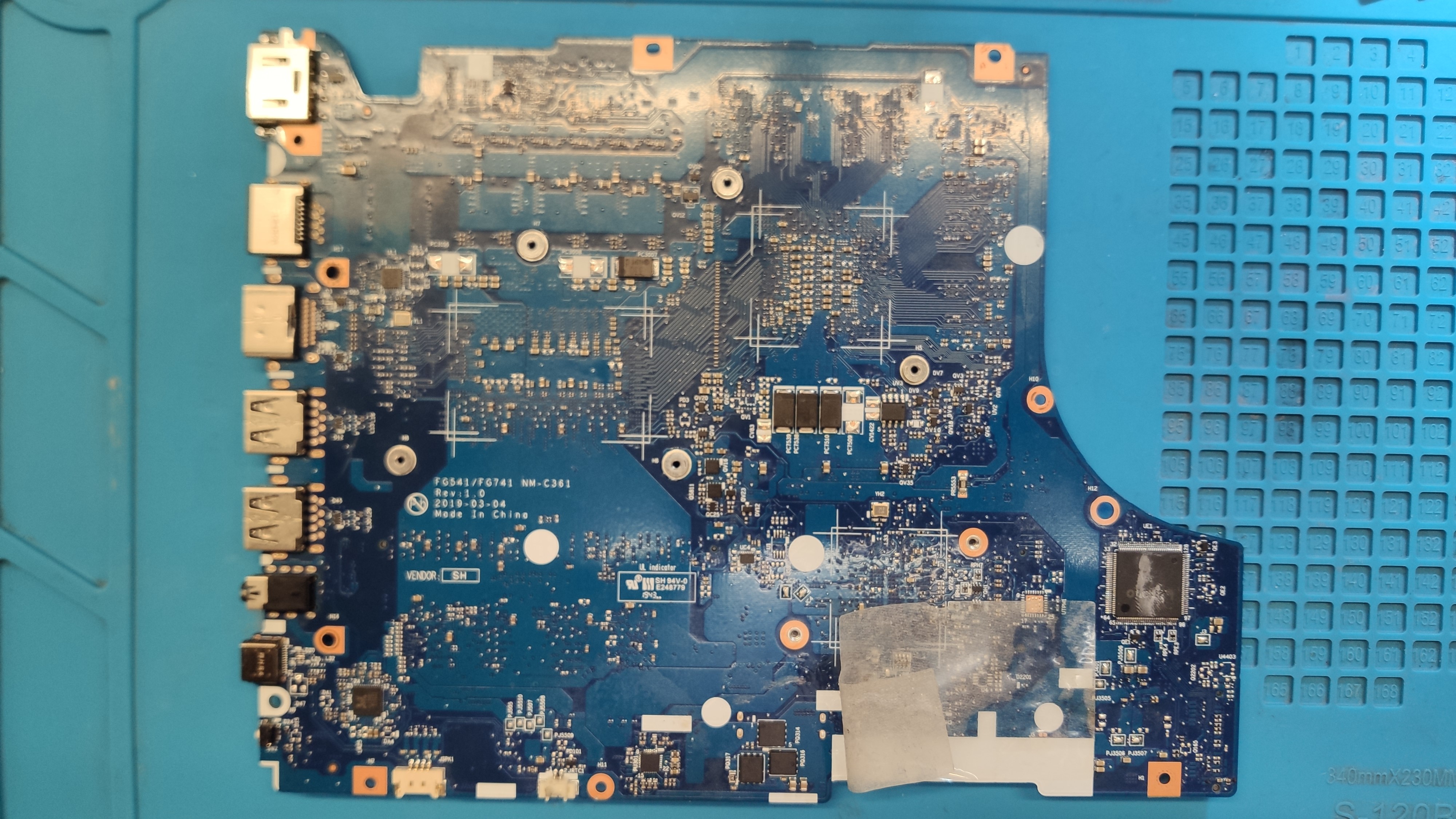 mam w naprawie laptopa Lenovo L340-15IRH. Model płyty głównej NM-C361. Laptop trafił do mnie po upadku w trakcie, którego zostało uszkodzone gniazdo ładowania w taki sposób, że zwarł się pin ID z pinem 20V. Pierwsza diagnoza uszkodzone KBC, który miał wypaloną dziurę. Zamówiłem KBC, po którego wymianie sprzęt dalej się nie uruchamiał. Okazało się, że nie otwiera się górny klucz więc wymieniłem układ ładowania. Napięcie powróciło na płytę ale laptop uruchamiał się bez obrazu więc przeprogramowałem BIOS, który pobrałem z internetu i laptop się uruchomił. Zainstalowałem system i laptop działał sprawnie. Nie dawało mi jednak spokoju to, że w nowym biosie nie ma danych DMI(numer seryjny, nazwa laptopa...). Stwierdziłem, że będę kopiował wybrane fragmenty z oryginalnego biosa i wrzucał je do tego działającego z nadzieją, że któryś z tych fragmentów będzie zawierał dane DMI. Powtórzyłem tą czynność około 5 razy kopiując coraz więcej fragmentów z oryginalnego biosa(laptop po przekopiowaniu każdej partii włączał się poprawnie) aż za szóstym razem wystartował bez obrazu. Wgrałem więc biosa z internetu, na którym laptop działał bez zarzutów i ku mojemu zdziwieniu dalej ten sam problem czyli brak obrazu i laptop cały czas się resetuje. Zaznaczę, że programowałem kość biosa przy użyciu klipsa więc wykluczam termiczne uszkodzenie płyty czy samego układu bios. Wymiana kości bios na inną nie przyniosła skutku. Zamówiłem nowy KBC i dalej nie ma poprawy. Stan na teraz jest taki, że laptop reaguje na przycisk zasilania, zapalają się diody po czym po chwili gasną i tak wkoło. Mam napięcia 3.3V, 5V, 1V,12V od ładowania baterii brak napięć z sekcji zasilania procesora, grafiki, vram i ram.