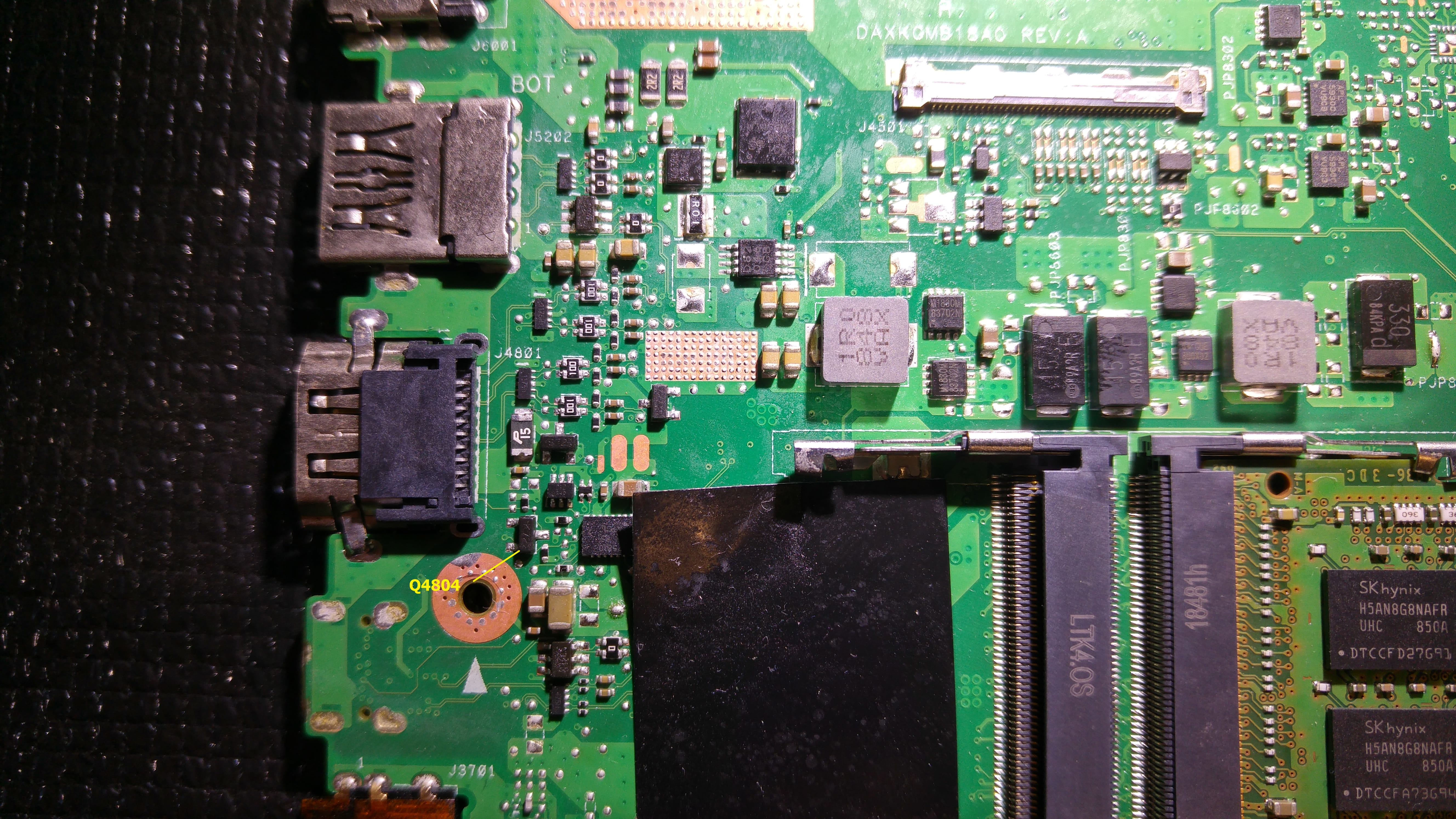 - Measure the voltage drops (diode test mode) on pins 1, 4 of transistor Q4807.