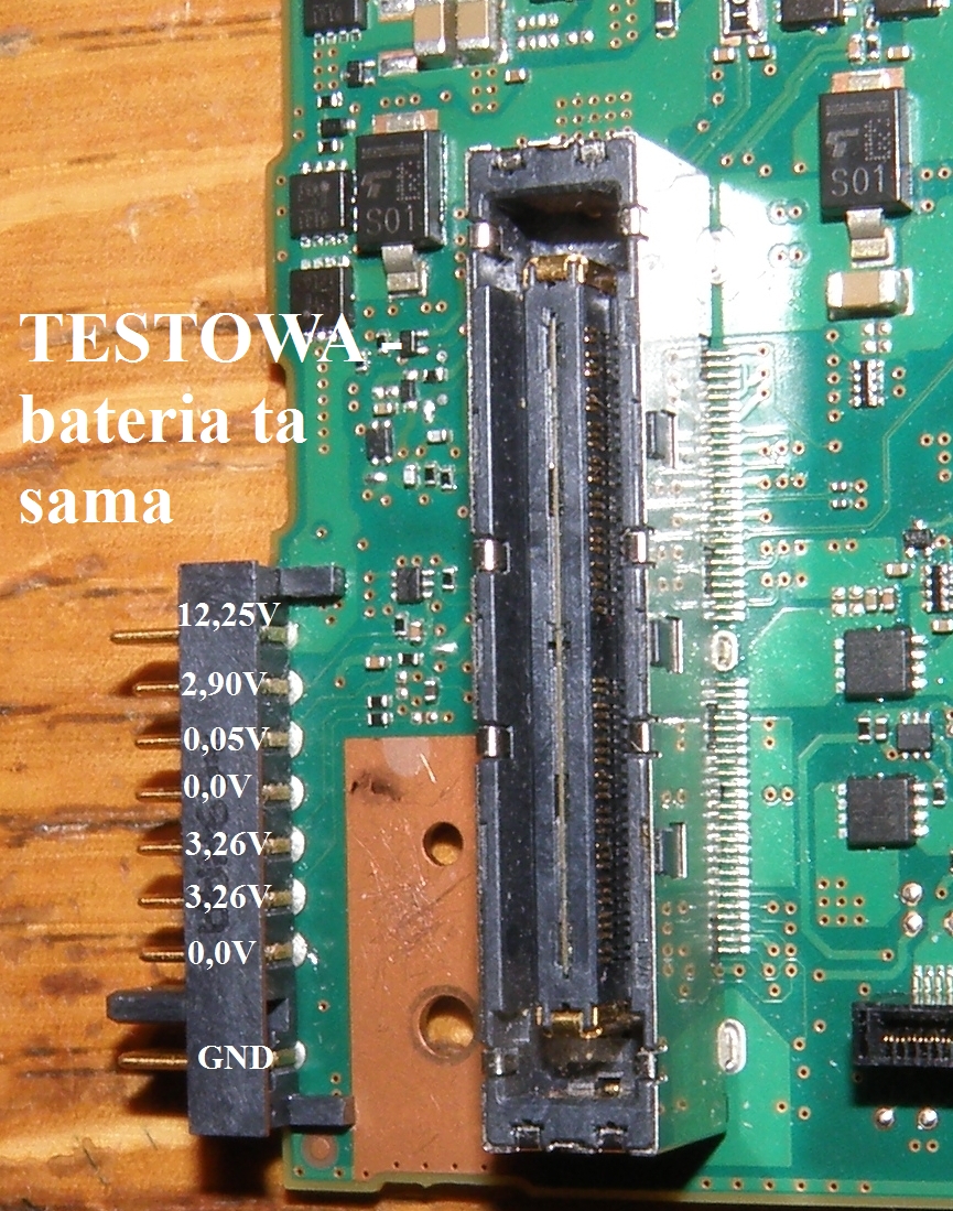 Pomierzyłem napięcia na złączu baterii (bez zasilacza) na testowej płycie jest odpowiednio: