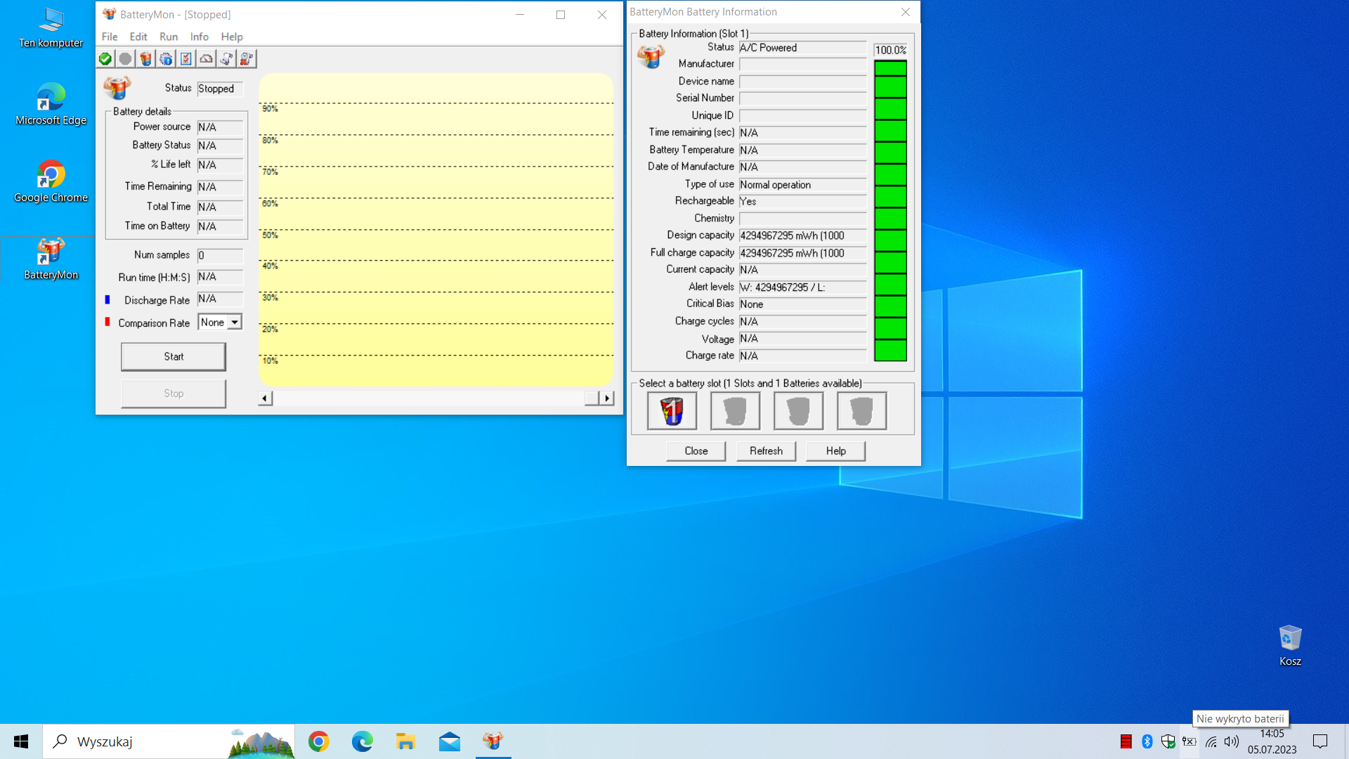 Zainstaluj Baterrymon i wstaw zdjęcie z zakładki informacja o baterii, gdy podłączony jest zasilacz oraz bateria.