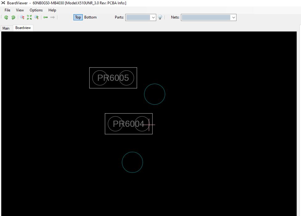 Rezystancję pomiędzy wyprowadzeniami zaznaczonego na czerwono rezystora 0Ω według BoardViewer to jest PR8903 i jego wartość ma wynosić RES 0 OHM 1/16W