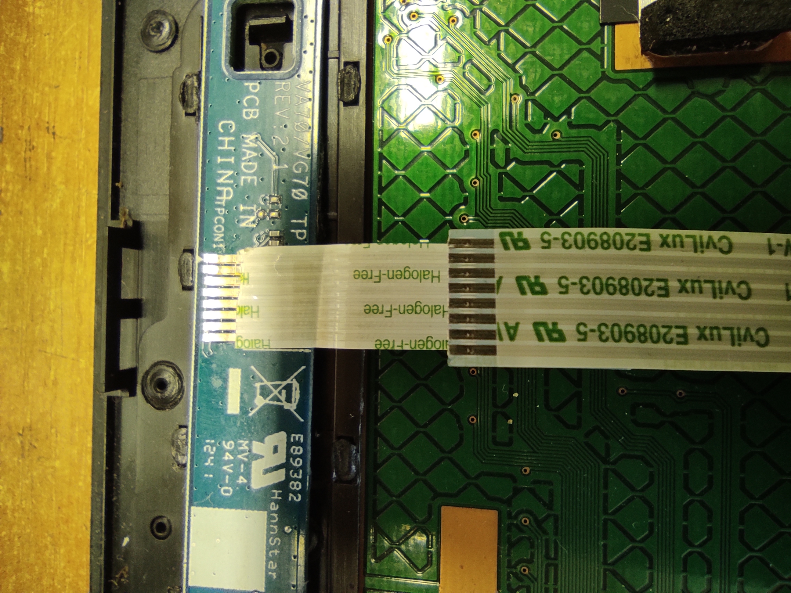 W laptopie jak w temacie z płytą VA70/VG70 REV:2.1 przestał działać touchpad przyciski też nie reagują, jedynie co działa to czujnik zamknięcia obudowy