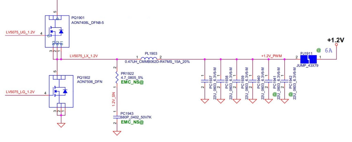 PQ1901 damaged (The pad is damaged)and after replacing 1.2 is ok. seems that all main coil voltage is ok.