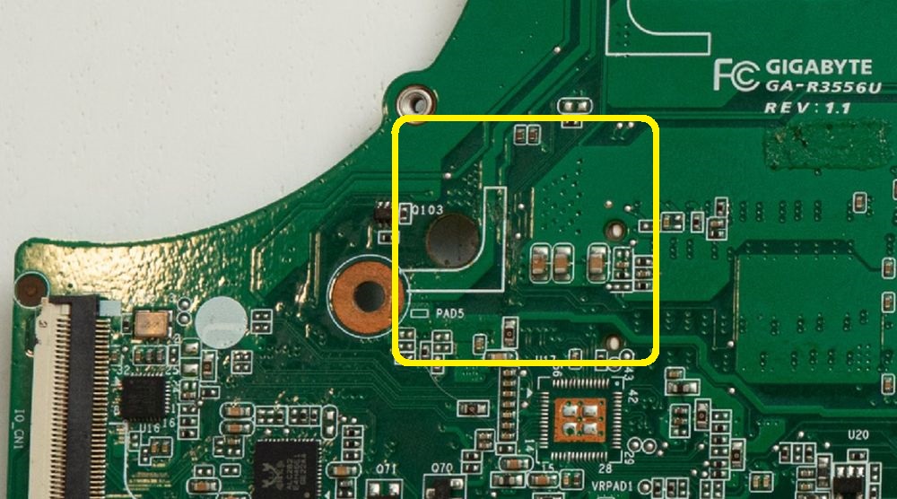 Remove the coil L6 from the board and inject 1.3V from the laboratory power supply to the system side of coil L6 (the pad close to the RAM slots). Measure the electrical current that flows from the laboratory power supply during the test with an external ampere meter set to the mA range.