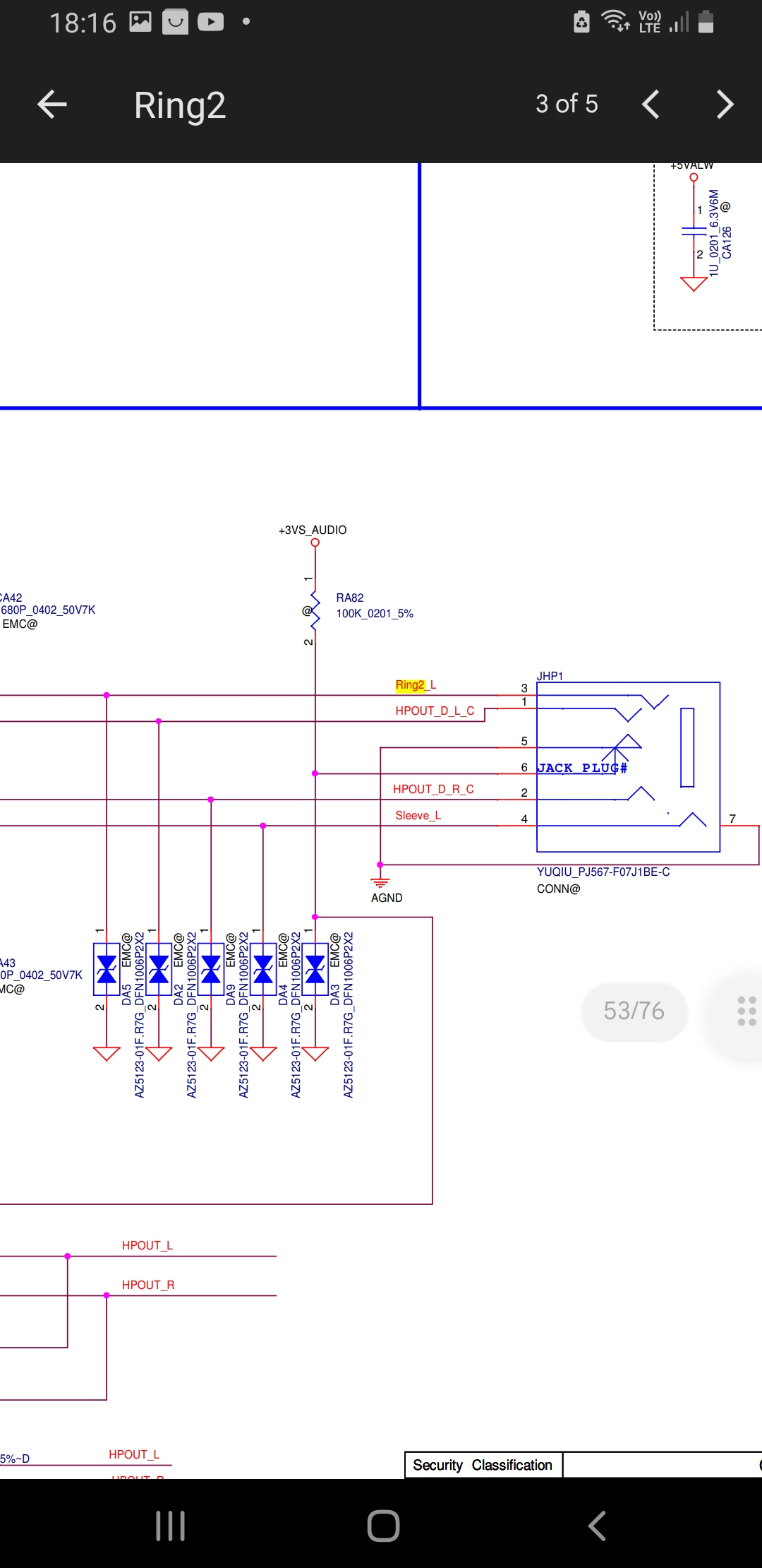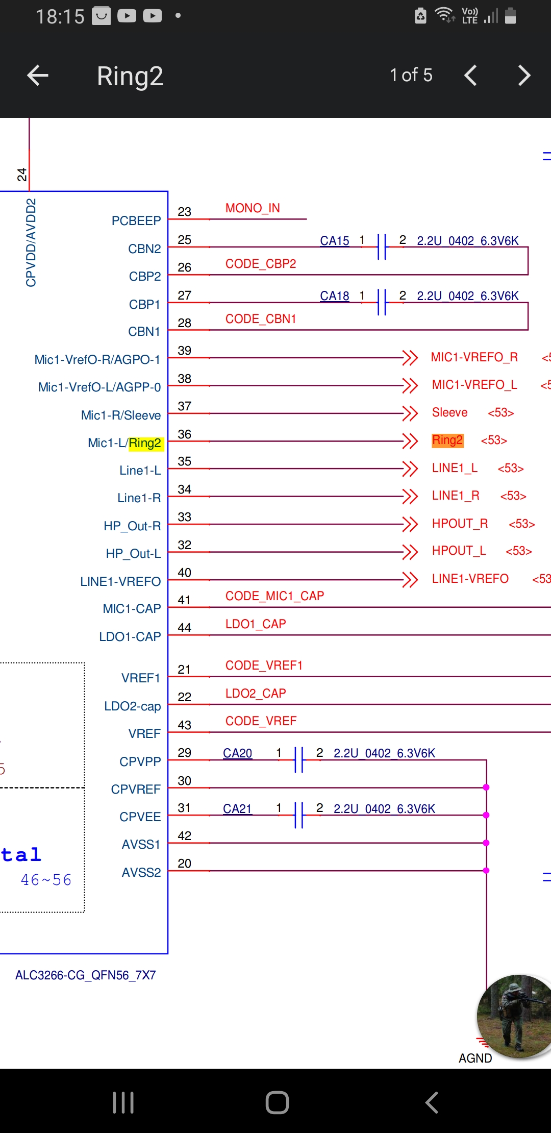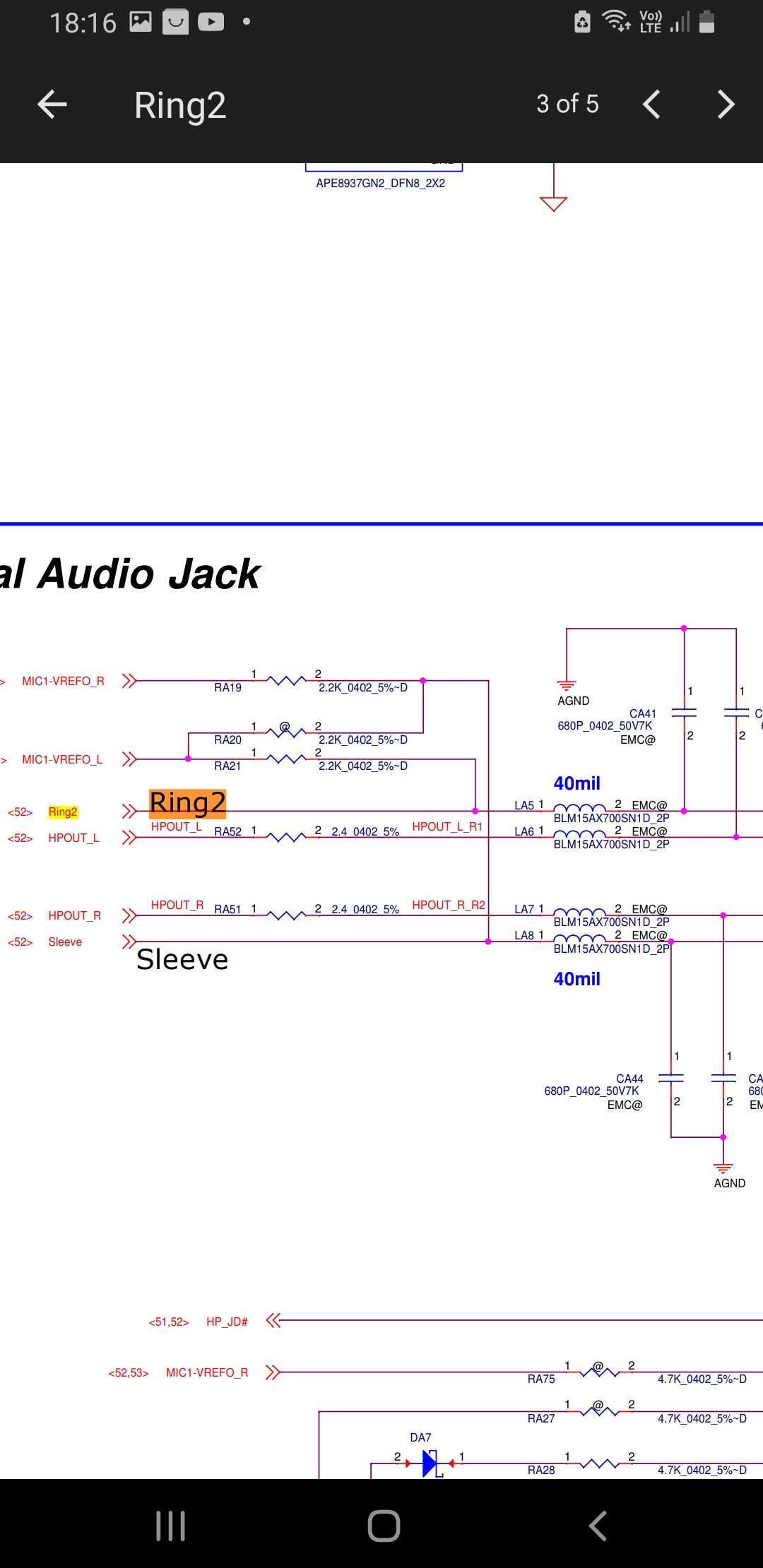 Zwarcie na liniach ring 2, sleeve. Kodek ALC3266 do którego idą te linie wymieniałem 3 razy... Po wylutowaniu i pomiarach linii na samym kodeku rezystancje wysokie. Jak kodeka nie ma na płycie to zwarcia nie ma. Sprawdziłem wszystkie diody, wylutowałem nawet gniazdo jack nic to nie daje....
