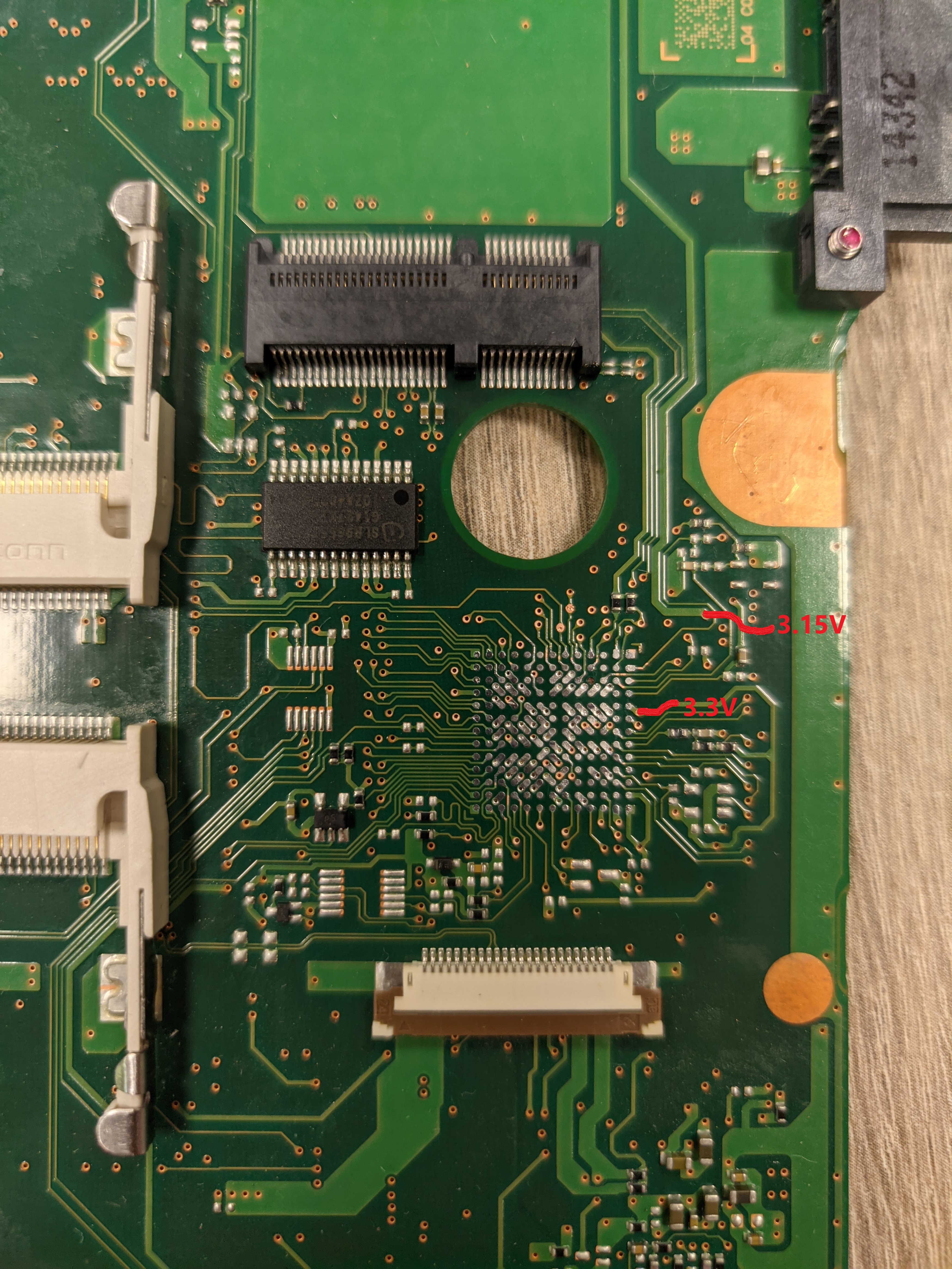 Po rozebraniu urządzenia i podpięciu płyty pod zasilanie, kamera termowizyjna wskazała grzanie się układu TPS51285A i KBC mec1632. Po sprawdzeniu rezystancji na układzie TPS51285A, było zwarcie linii 3.3V LDO. Po wylutowaniu układu, zwarcie nadal było, więc byłem pewny na 90%, iż KBC również jest zwarty. Po zrobieniu próby zwarciowej, moje domniemania okazały się trafne. Uszkodzony układ KBC. Został on wylutowany i oporność wróciła do prawidłowych wartości. Po zmierzeniu oporności na pozostałych dławikach, wydają się być ok. Układ TPS51285A i KBC mec1632 zostały wymienione. Po wymianie zwarć brak. Więc podłączyłem płytę do zasilania i zapaliły się wszystkie 3diody na biało (Wi-fi, włącznika i ładowania baterii). Po podłączeniu zasilania bezpiecznik, który jest przy głównej linii nagrzewa się przez ułamek sekundy do 50st, i jednocześnie układ TPS51285A(45st) i KBC mec1632(35st). KBC 3.3v wypuścił. Na kości bios 1 i 8 noga zero napięć. Gdy płyta w takim stanie była uruchomiona, znów zwarła się linia 3.3V LDO. Po wylutowaniu KBC zwarcie spada.